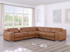 1116 - 6-Piece L-Shaped Sectional Sofa In With 3 Power Recliners & Power Headrests - Cognac