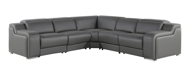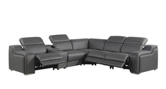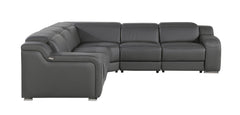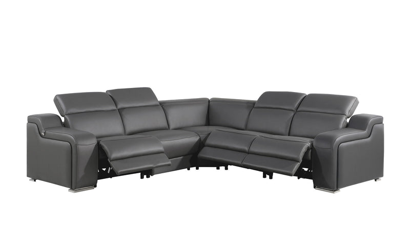 1116 - 5-Piece 3-Power Reclining Italian Leather Sectional - Dark Grey