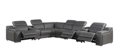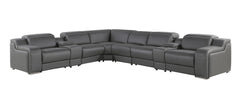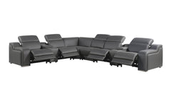 1116 - 7-Piece 3-Power Reclining Italian Leather Sectional - Dark Grey