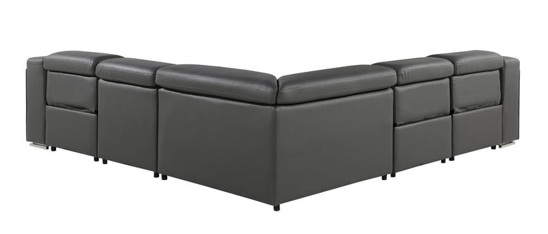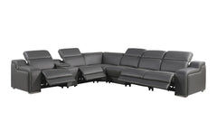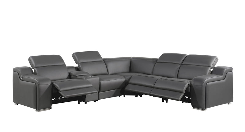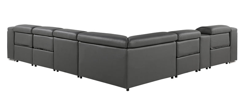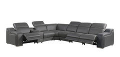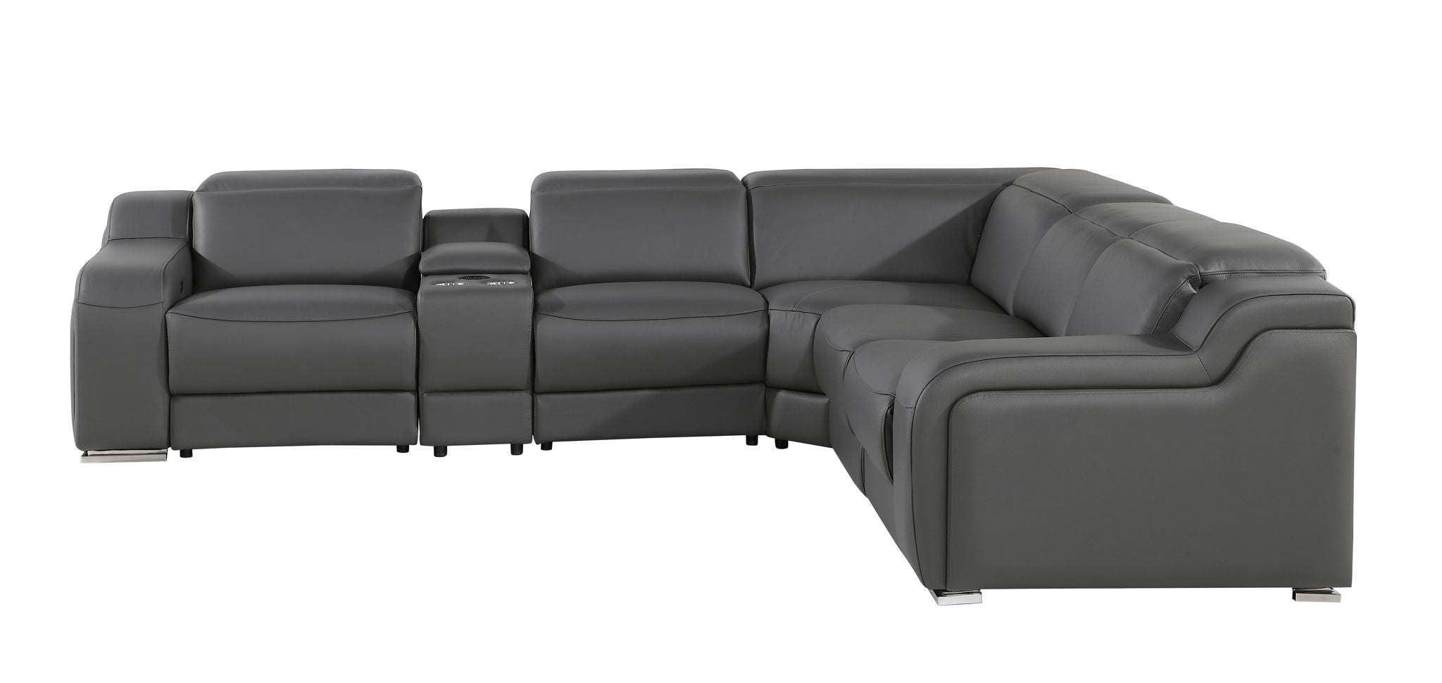 1116 - 6-Piece 3-Power Reclining Italian Leather Sectional - Dark Grey