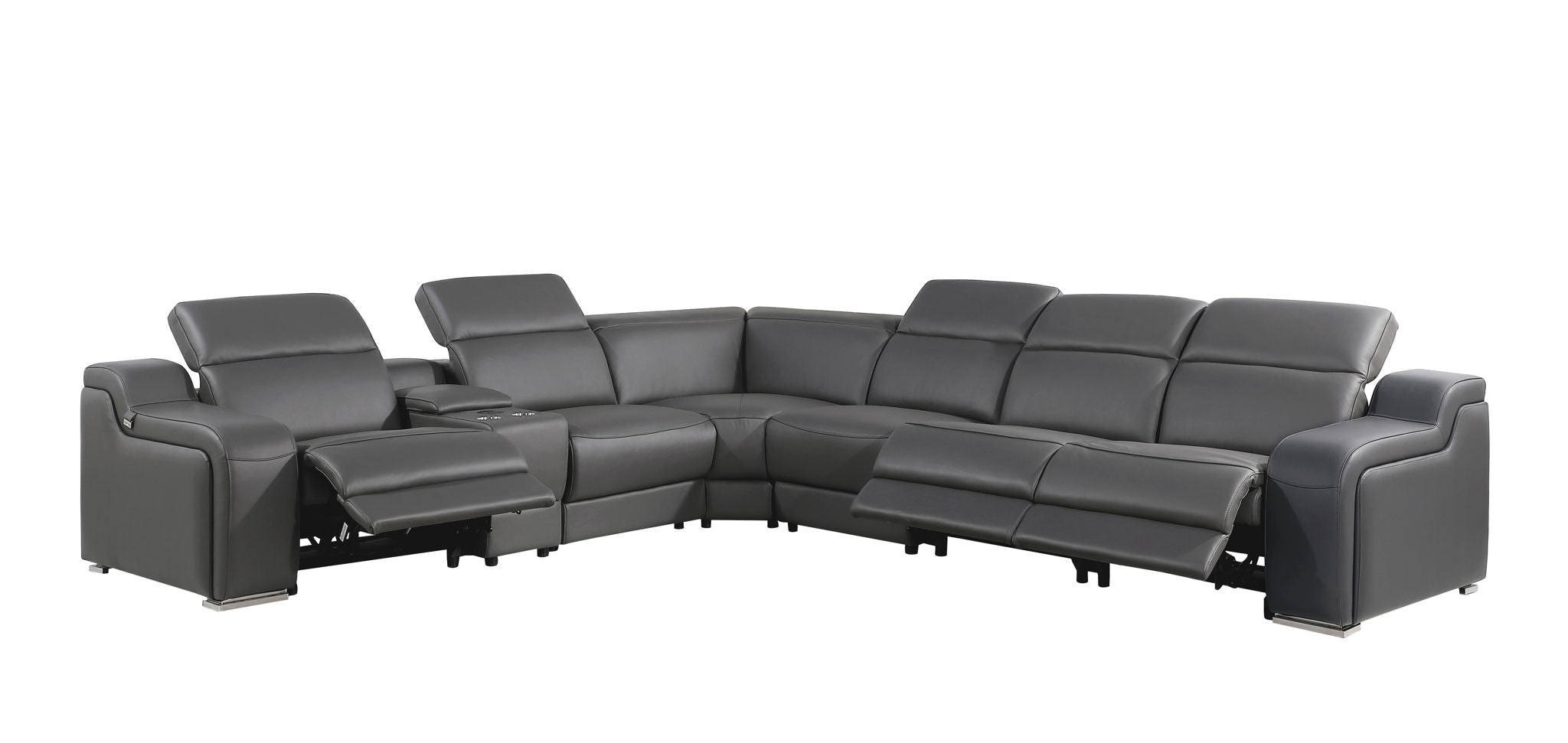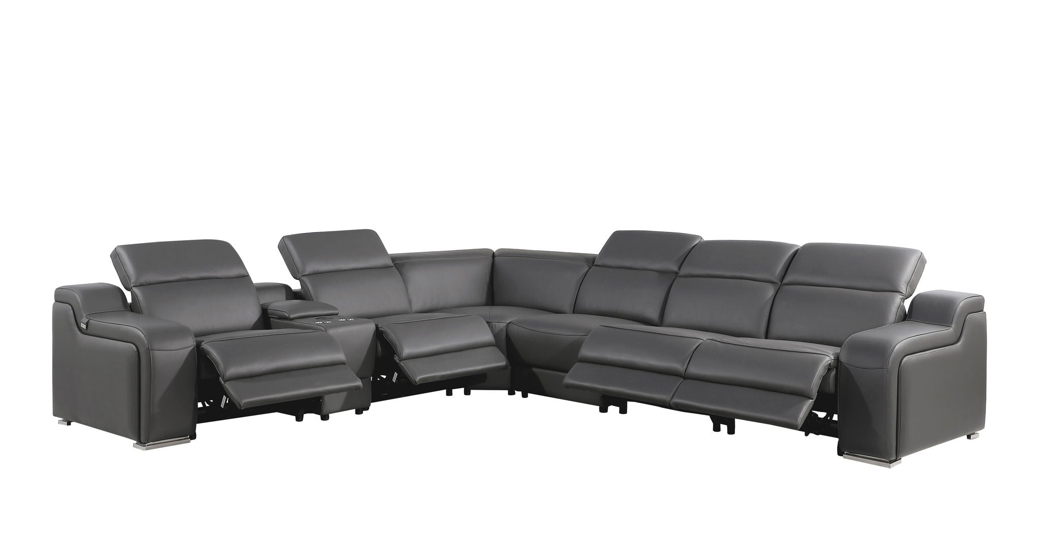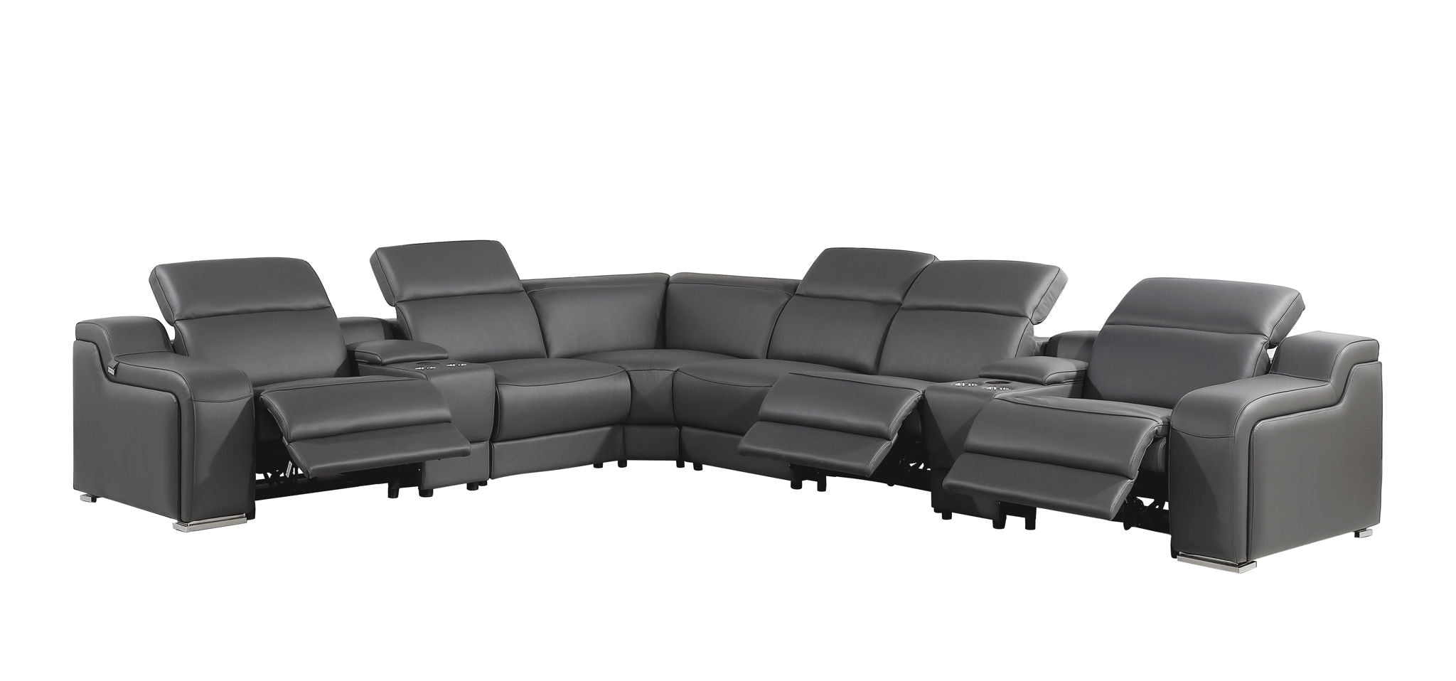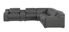 1116 - 7-Piece 4-Power Reclining Italian Leather Sectional - Dark Grey