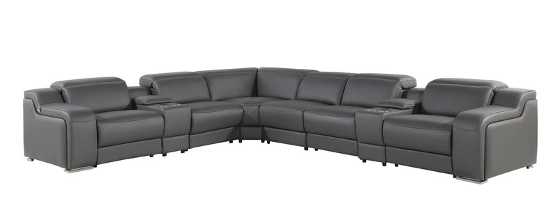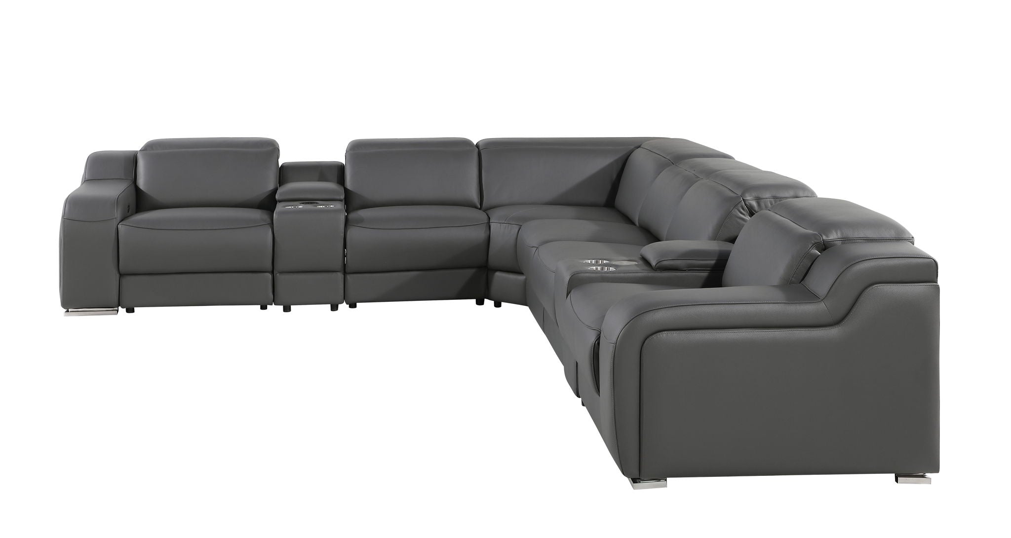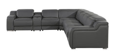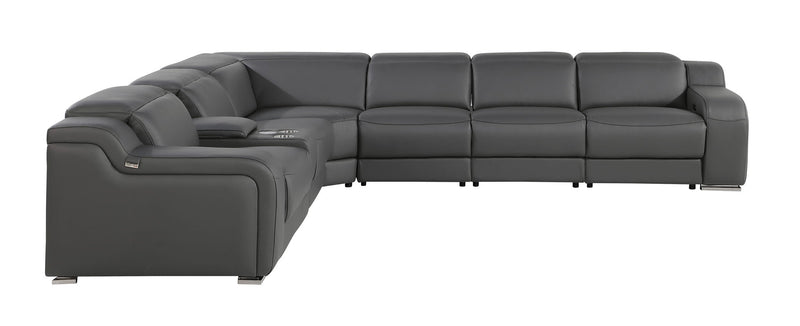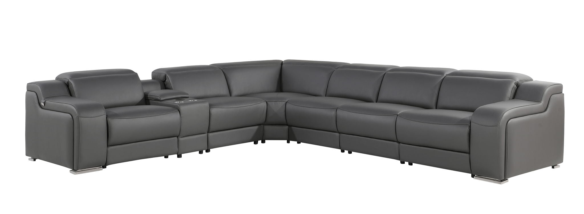 1116 - 7-Piece 4-Power Reclining Italian Leather Sectional - Dark Grey