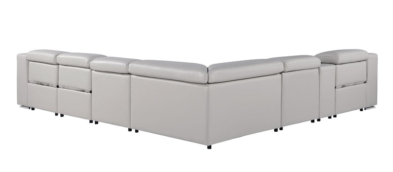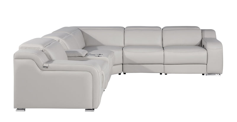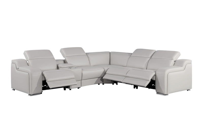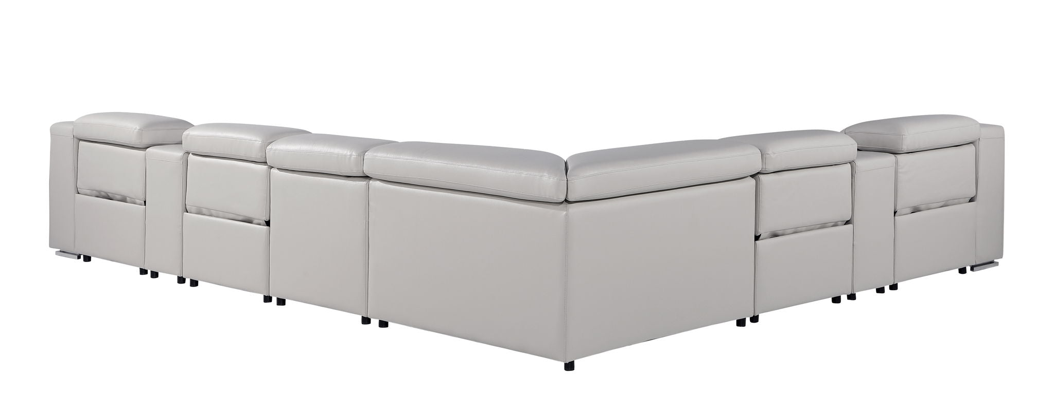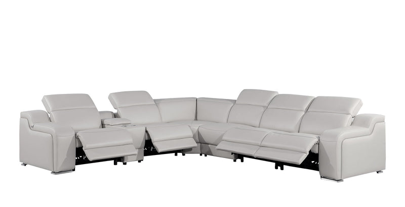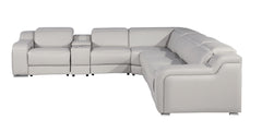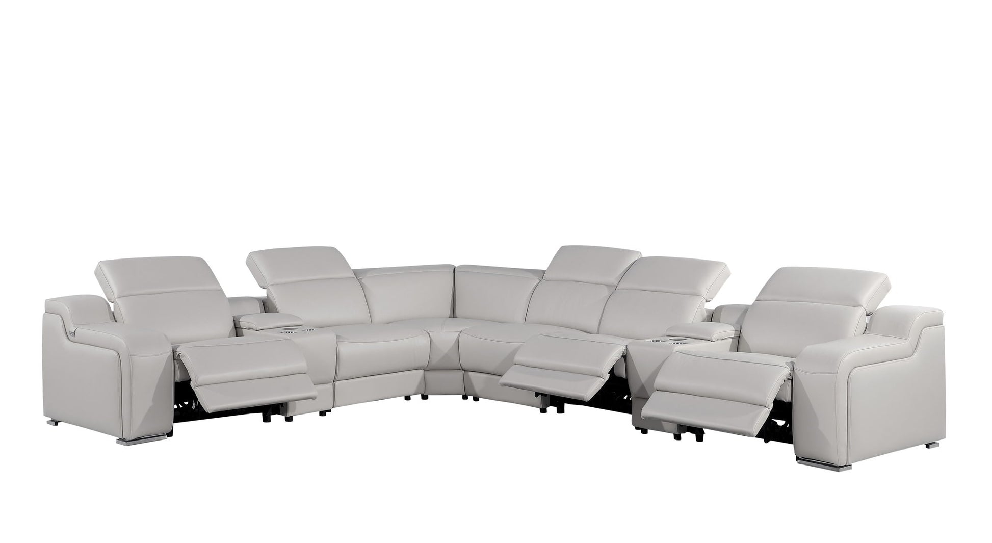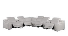 1116 - 7-Piece 4-Power Reclining Italian Leather Sectional - Light Grey
