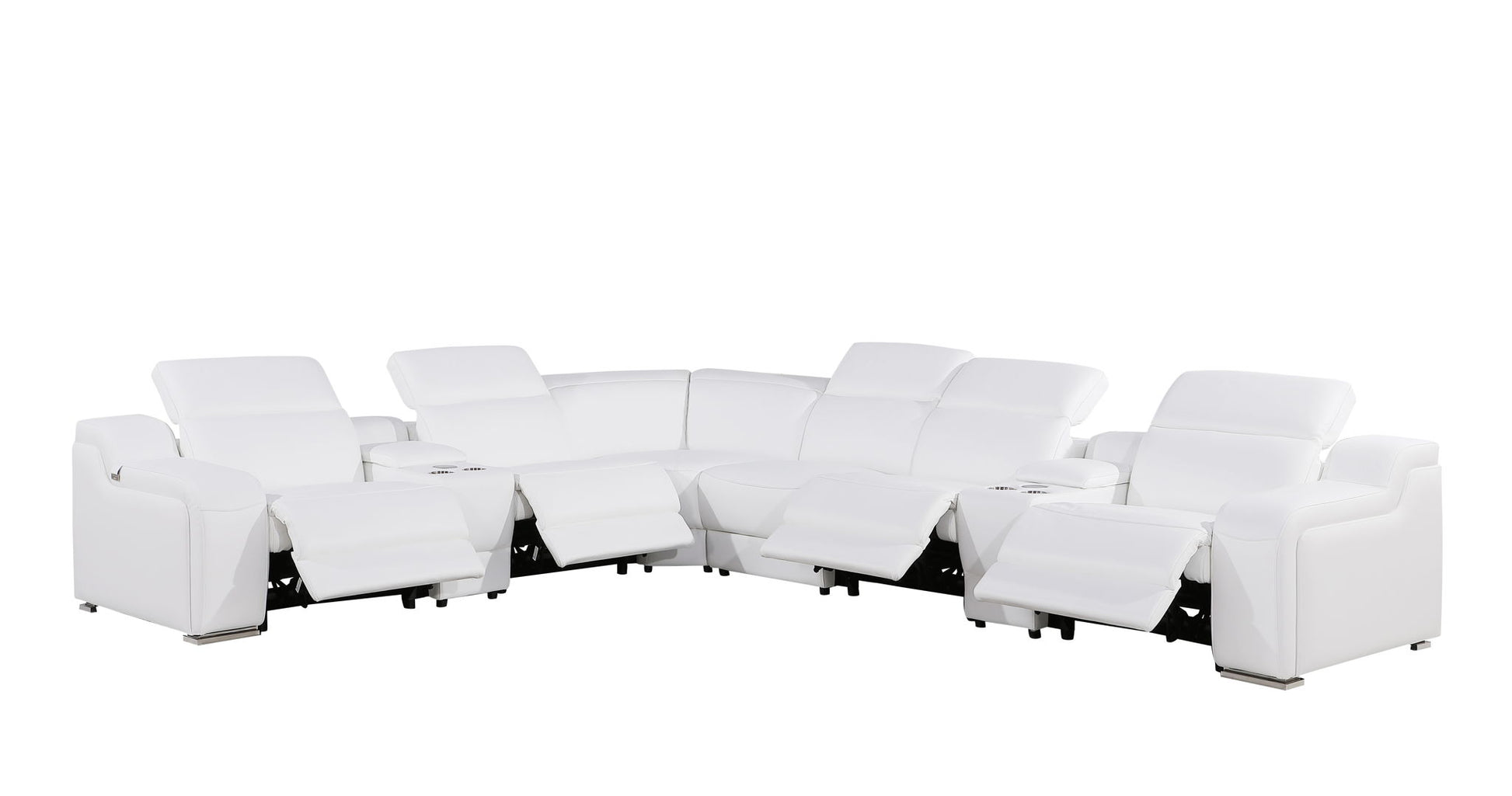 1116 - 8-Piece 4-Power Reclining Italian Leather Sectional - White