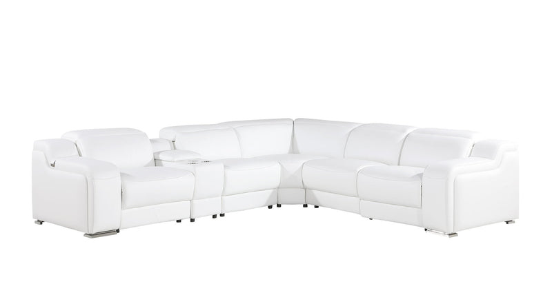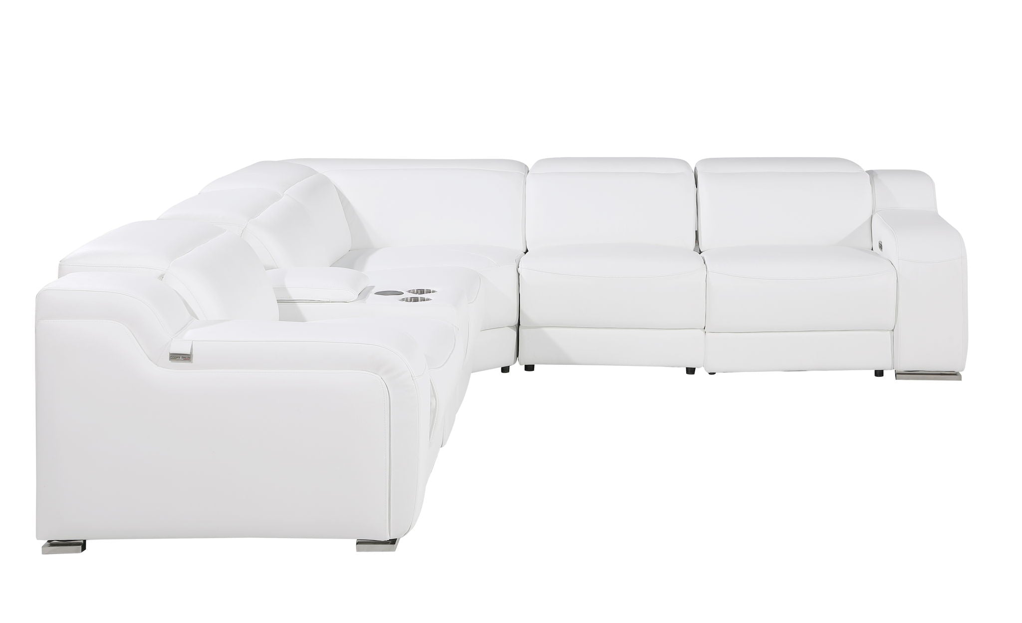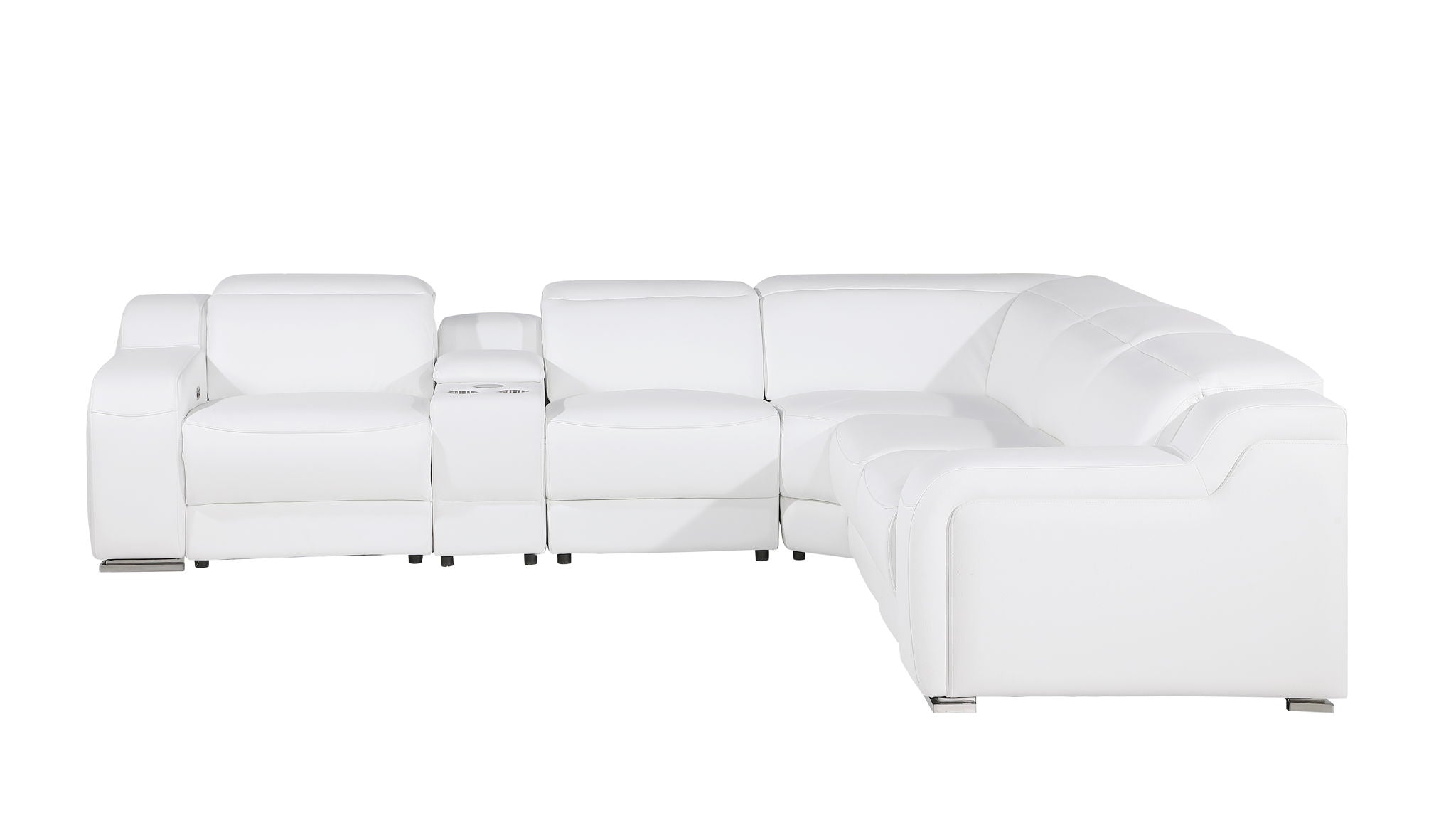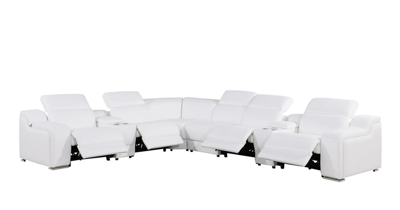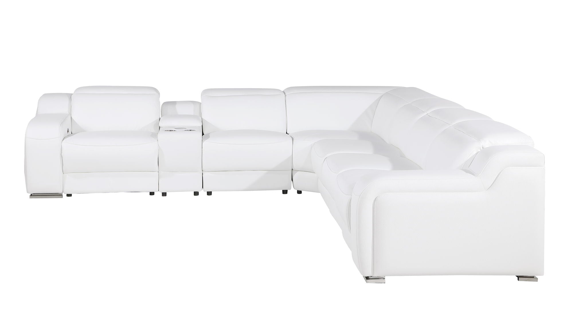 1116 - 7-Piece 4-Power Reclining Italian Leather Sectional - White