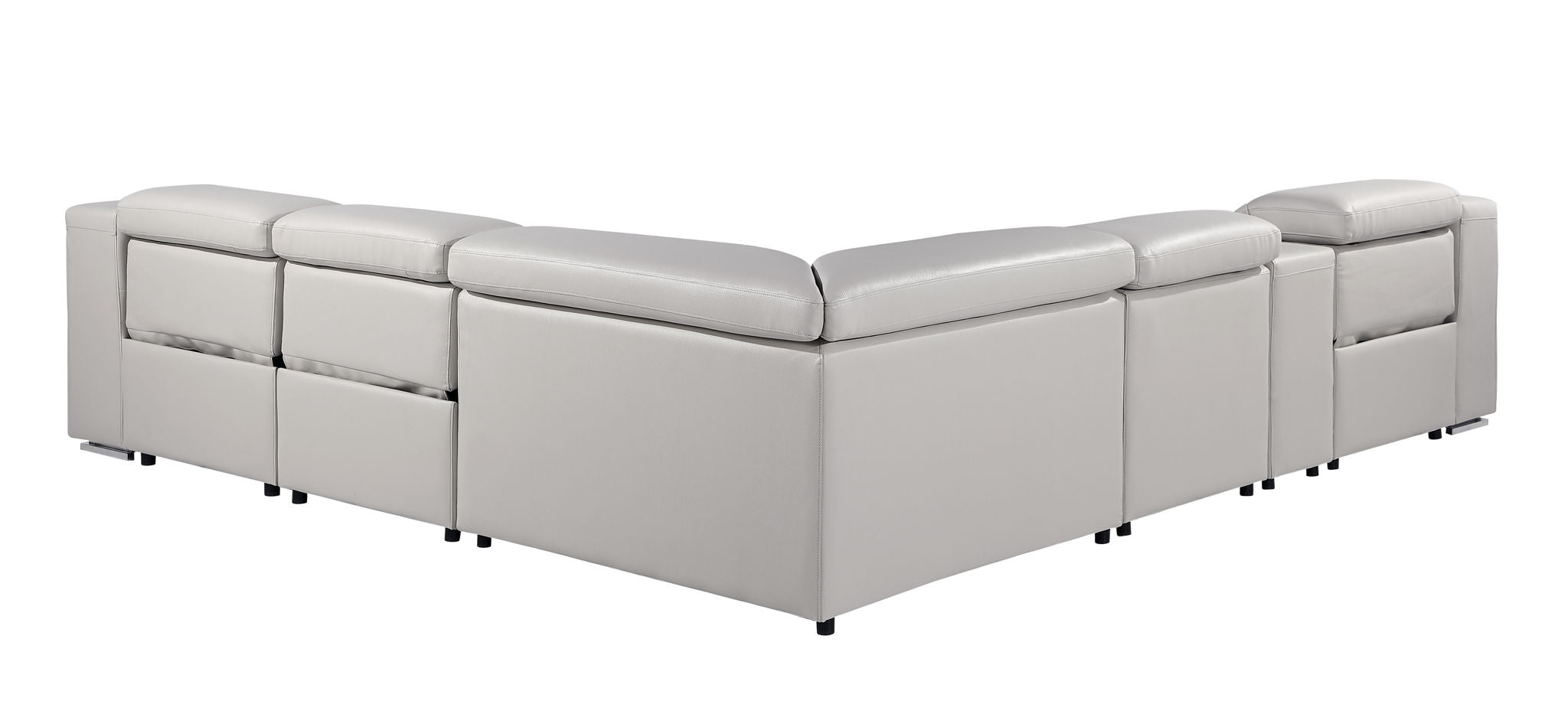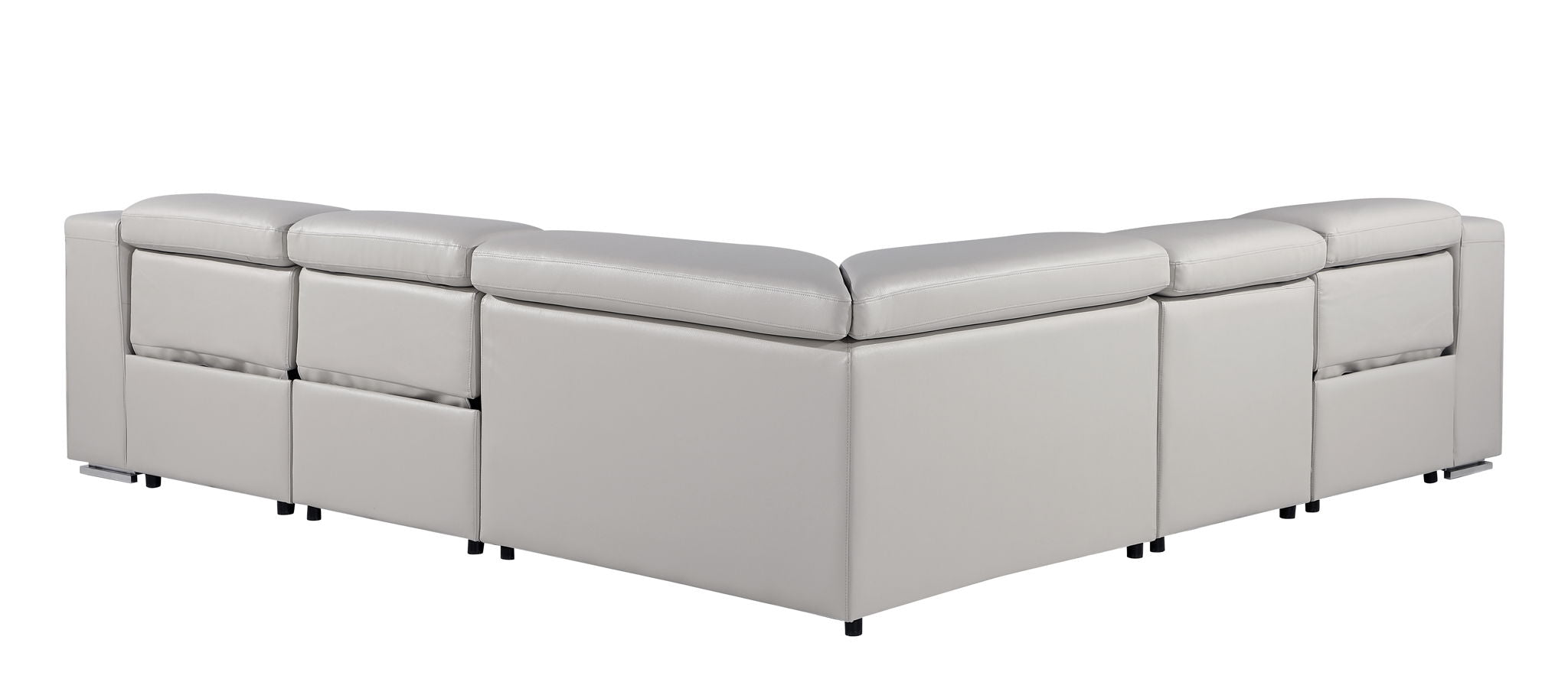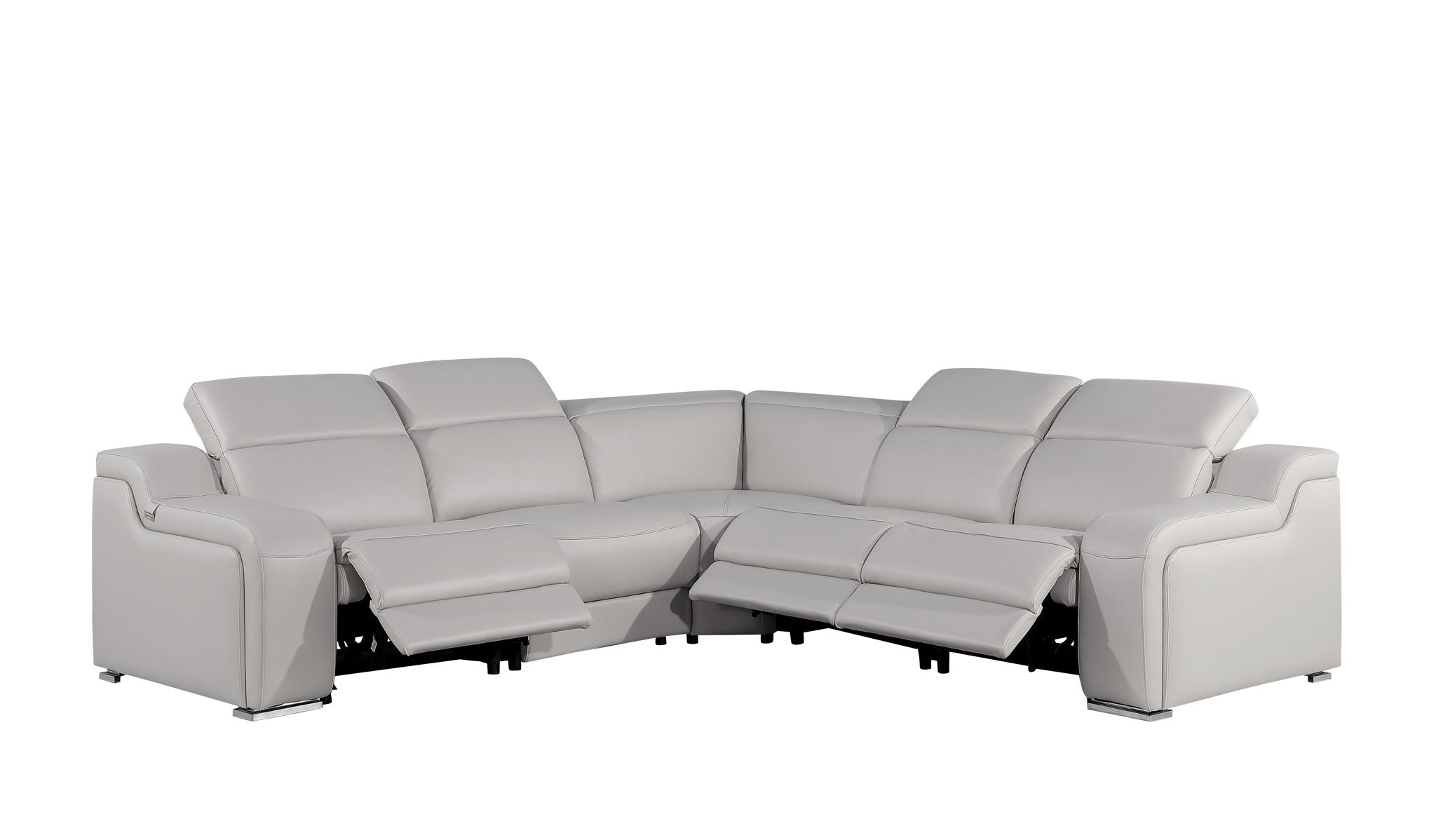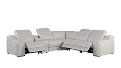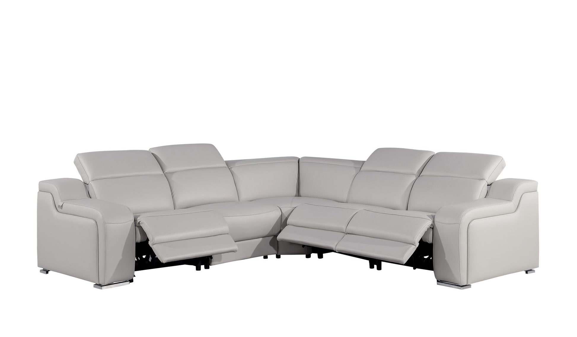 1116 - 5-Piece 3-Power Reclining Italian Leather Sectional - Light Grey