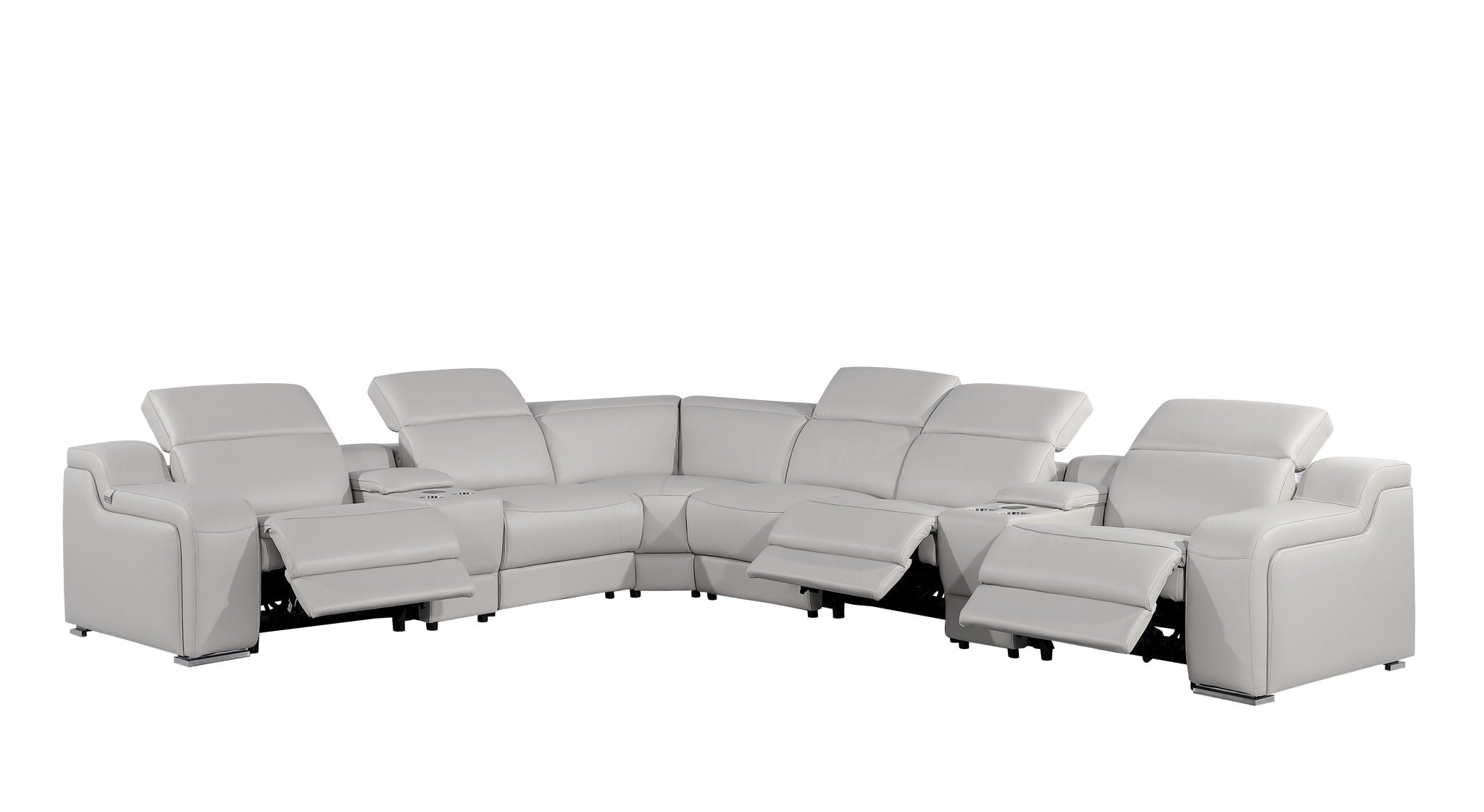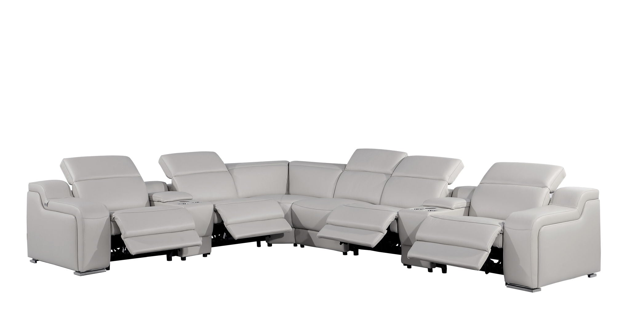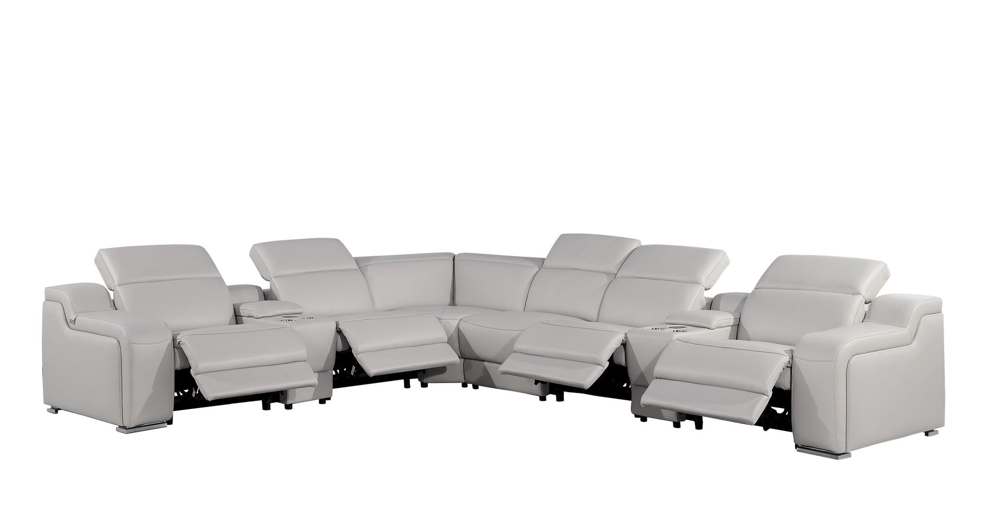 1116 - 8-Piece 3-Power Reclining Italian Leather Sectional - Light Grey