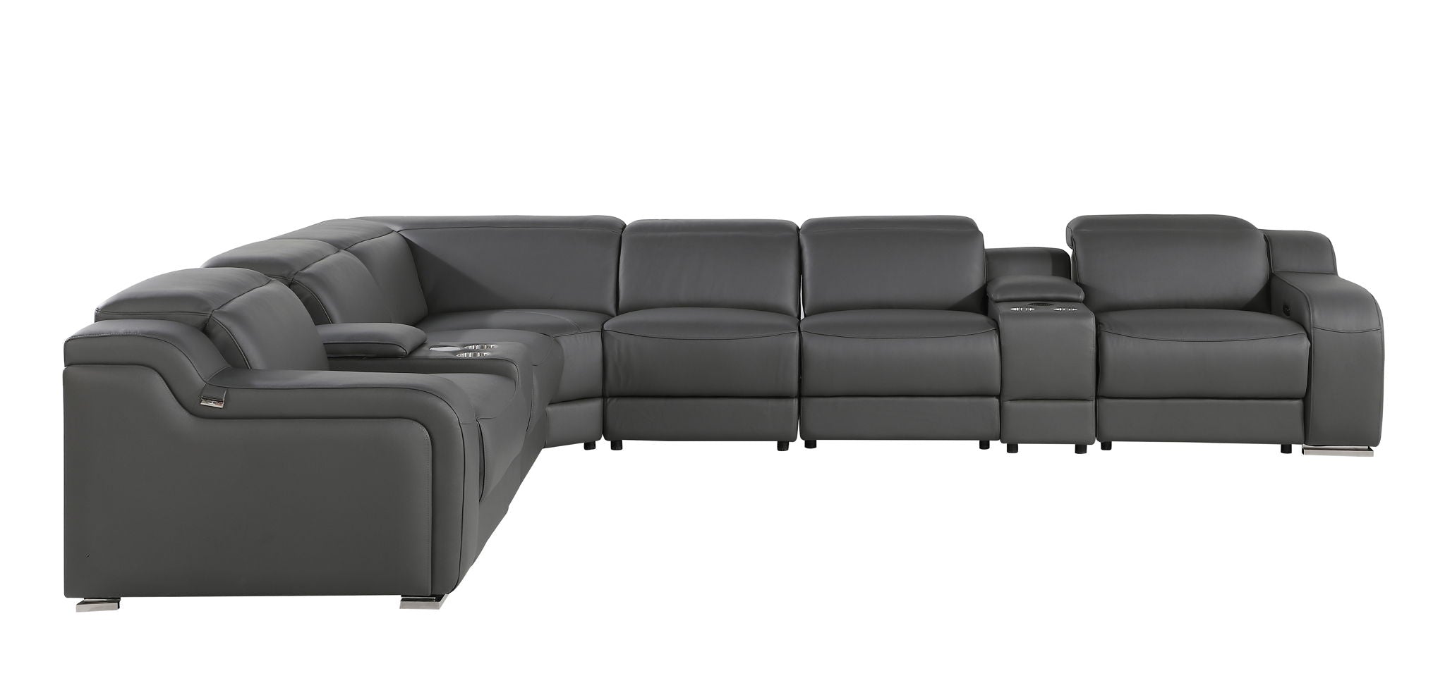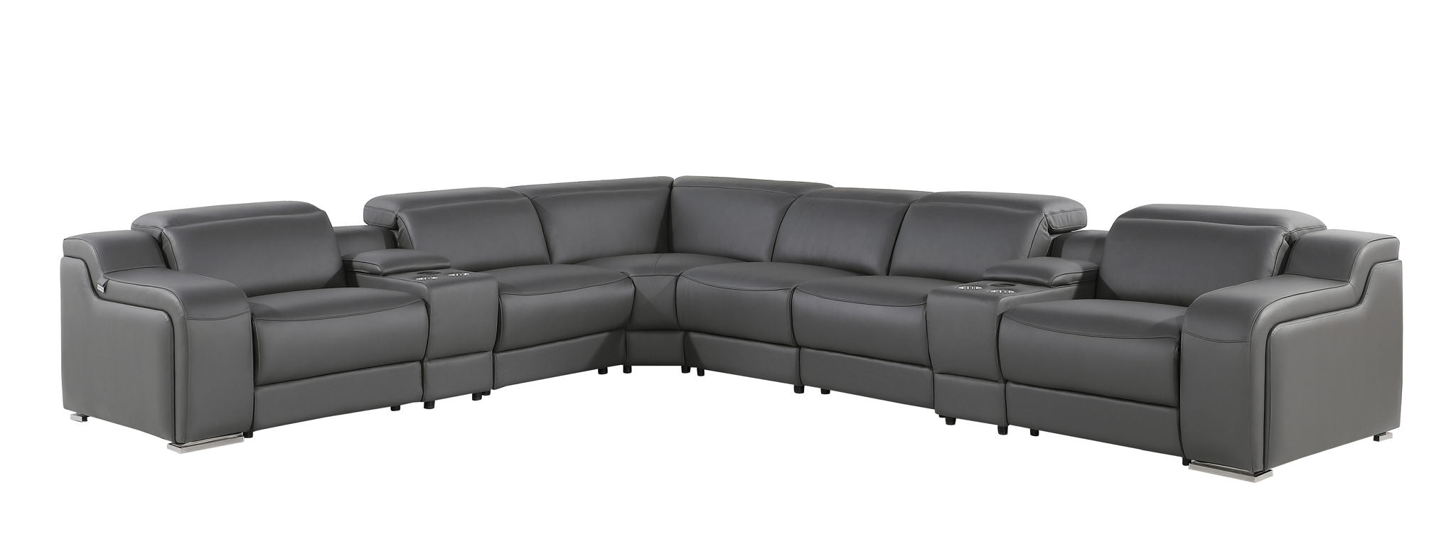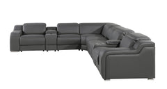 1116 - 8-Piece 4-Power Reclining Italian Leather Sectional - Dark Grey