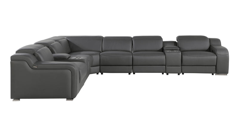 1116 - 8-Piece 3-Power Reclining Italian Leather Sectional - Dark Grey