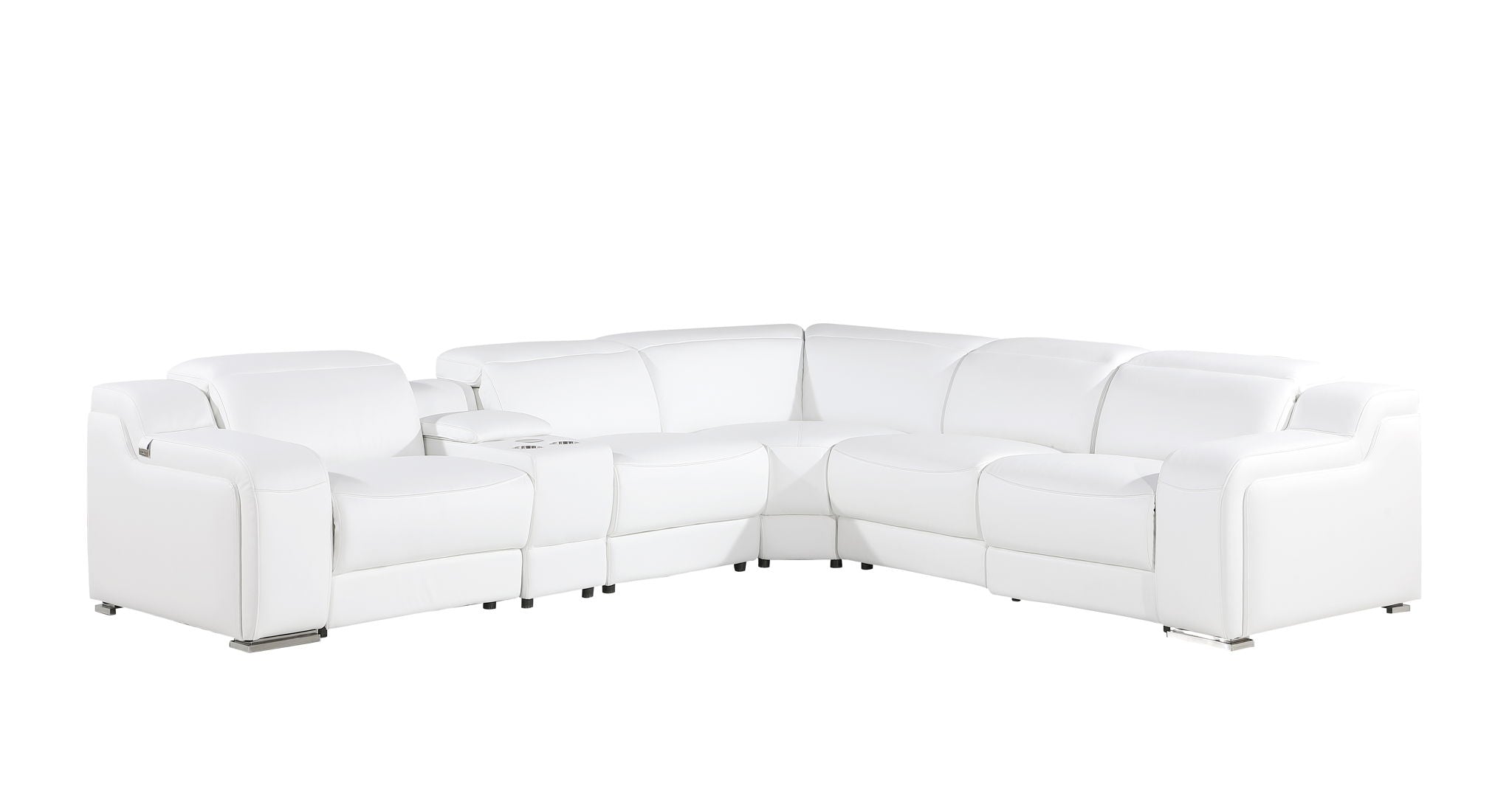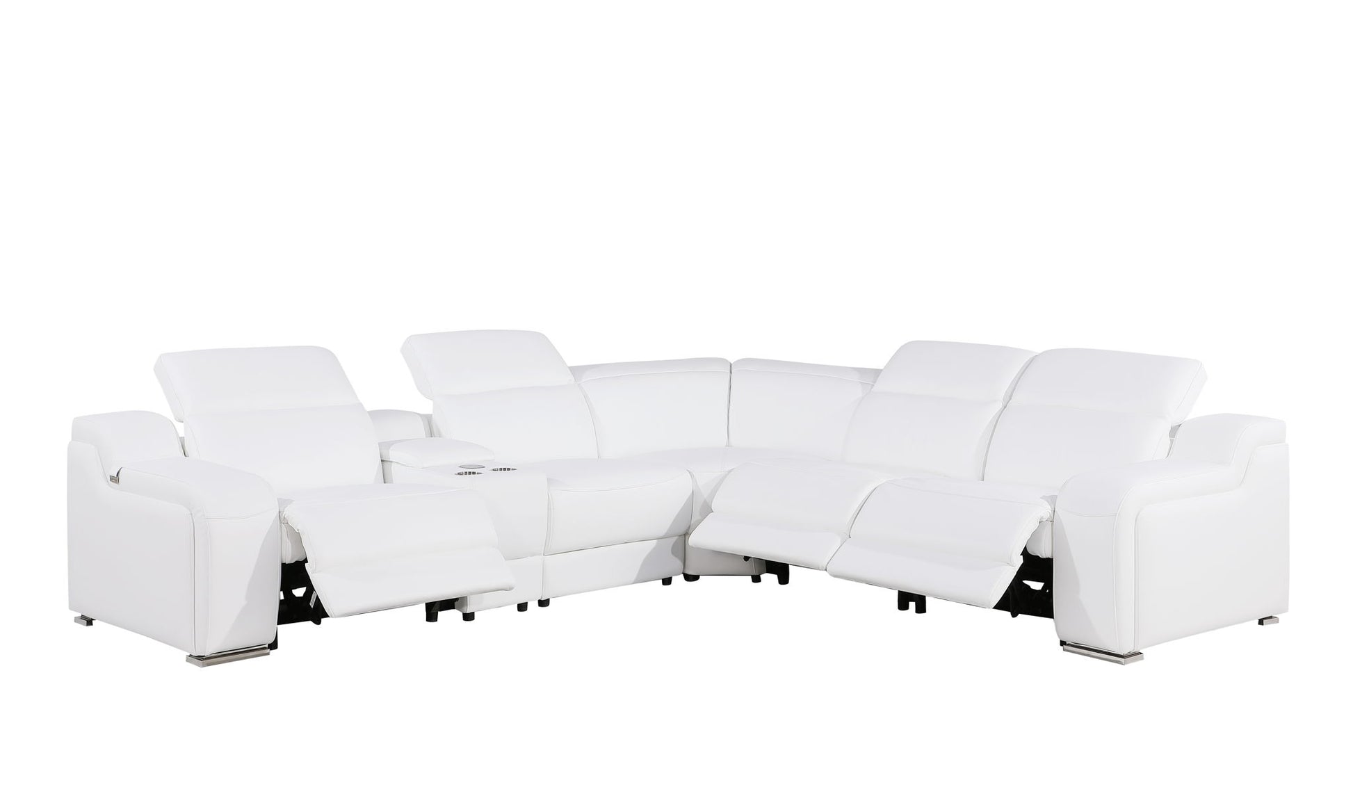 1116 - 6-Piece 3-Power Reclining Italian Leather Sectional - White