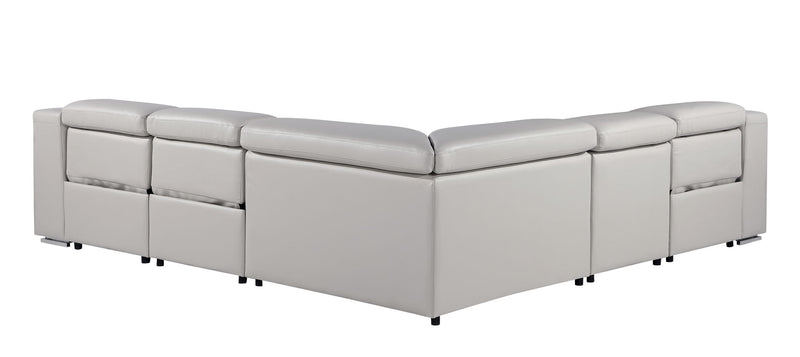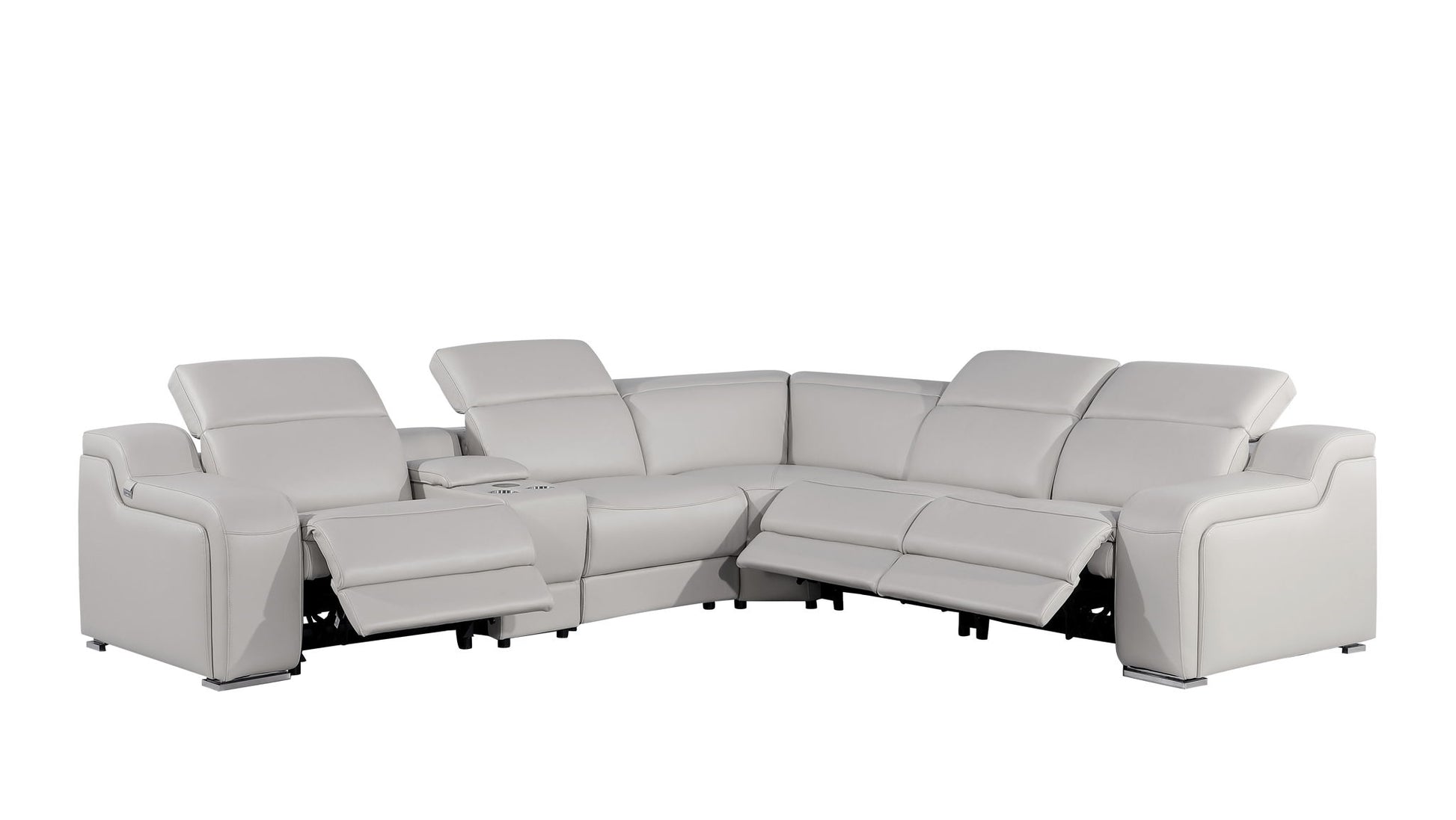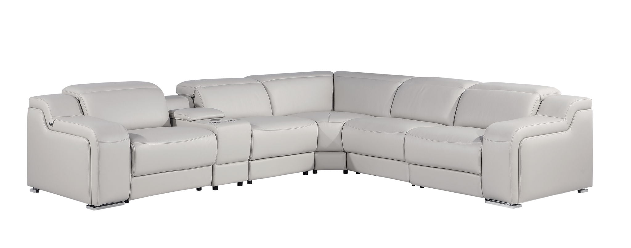 1116 - 6-Piece 3-Power Reclining Italian Leather Sectional - Light Grey