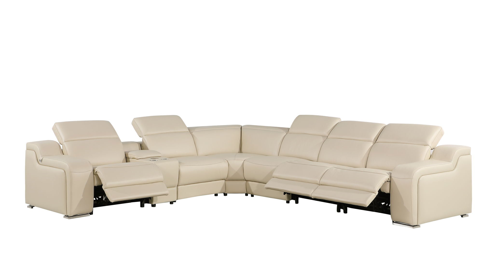1116 - 7-Piece 4-Power Reclining Italian Leather Sectional - Beige