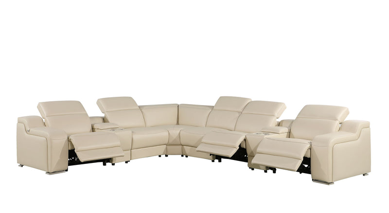 1116 - 7-Piece 3-Power Reclining Italian Leather Sectional - Beige