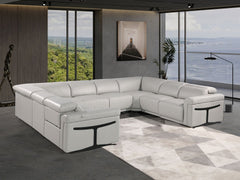 Upgrade your home with this 8-Piece Modular U-Shaped Top-Grain Italian Leather Sectional Sofa, designed for modern luxury and superior comfort. Its sleek, low-profile silhouette creates a contemporary aesthetic with the headrests down, while the modular U-shaped design provides expansive seating for family, guests, and home theater spaces. At the touch of a button, the 4 smooth power recliners and power-adjustable headrests deliver personalized comfort for lounging, reading, or movie nights.