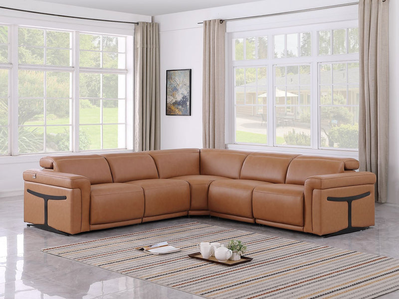 1126 - 6-Piece L-Shaped Sectional Sofa In With 3 Power Recliners & Power Headrests - Cognac
