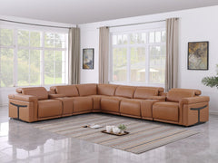 1126 - 8-Piece L-Shaped Sectional Sofa In With 3 Power Recliners & Power Headrests - Cognac