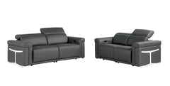 1126 - Top Grain Power Reclining Italian Leather Sofa And Loveseat - Dark Gray