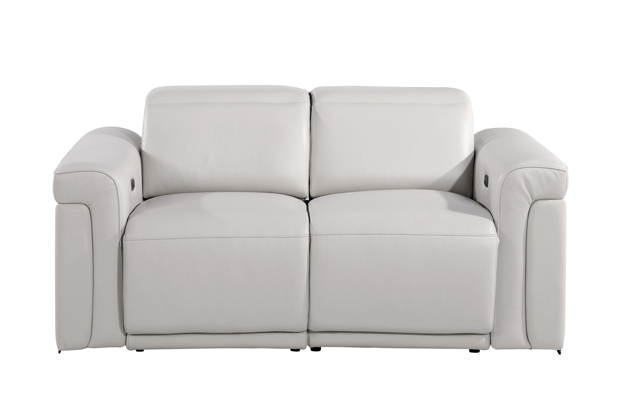 1126 - Top Grain Power Reclining Italian Leather Sofa And Loveseat - Light Gray