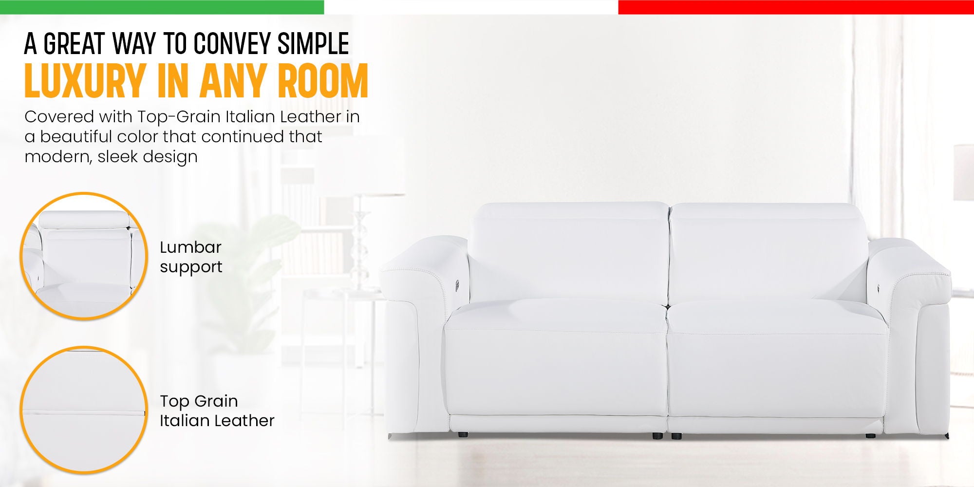 1126 - Top Grain Power Reclining Italian Leather 3 Piece Set - White