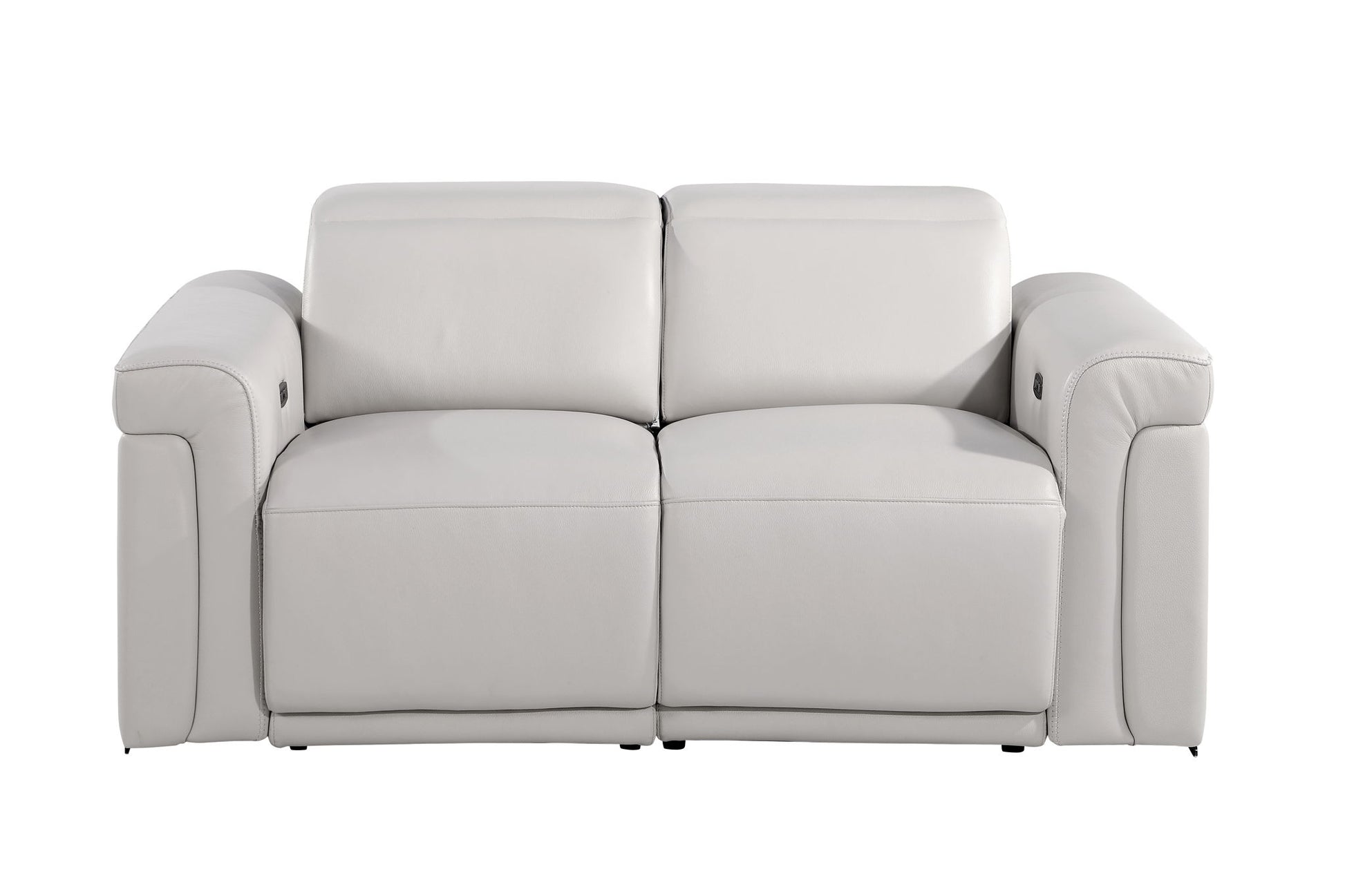 1126 - Top Grain Power Reclining Italian Leather Loveseat - Light Gray
