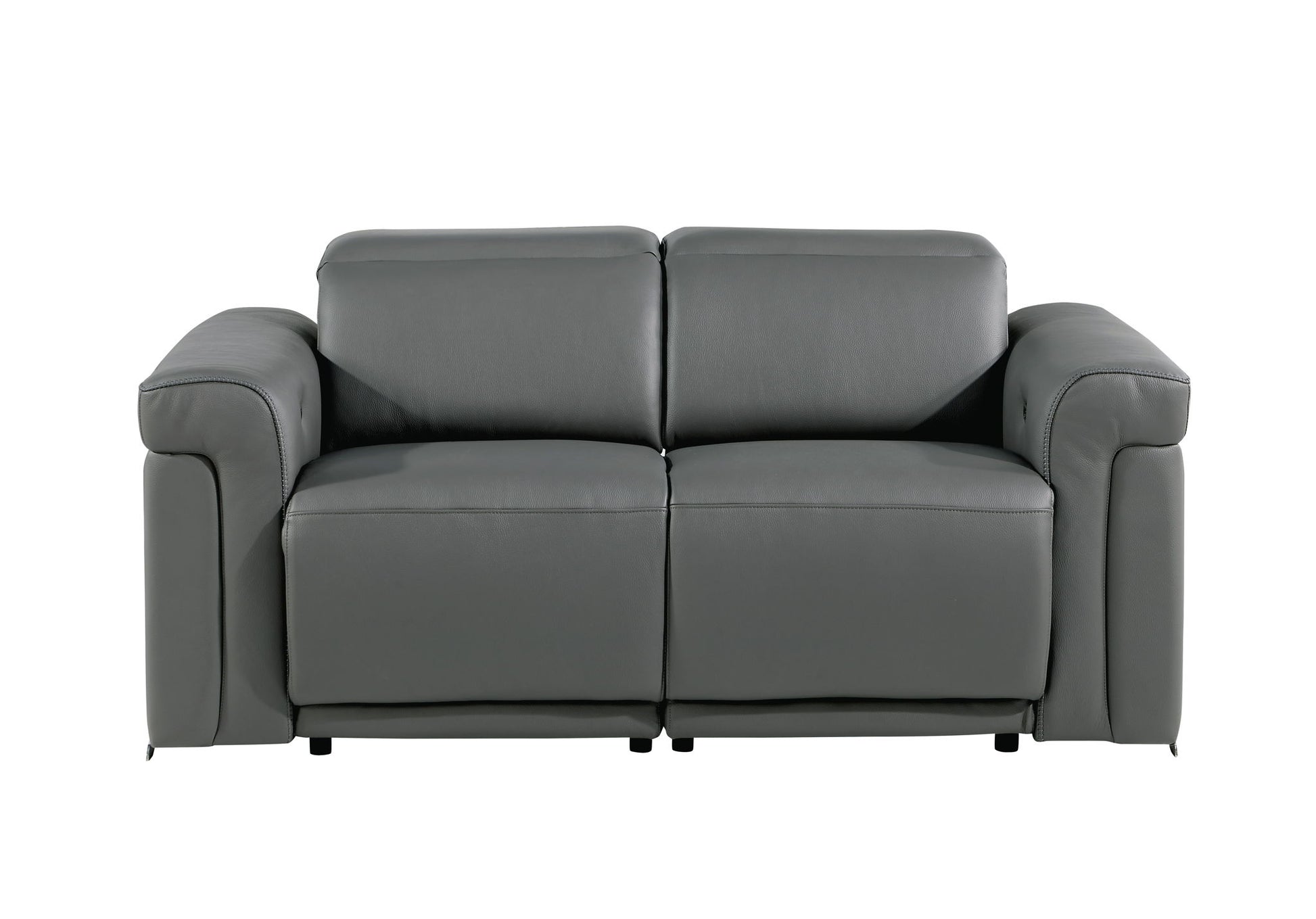 1126 - Top Grain Power Reclining Italian Leather Loveseat - Dark Gray