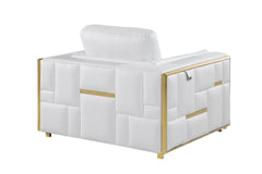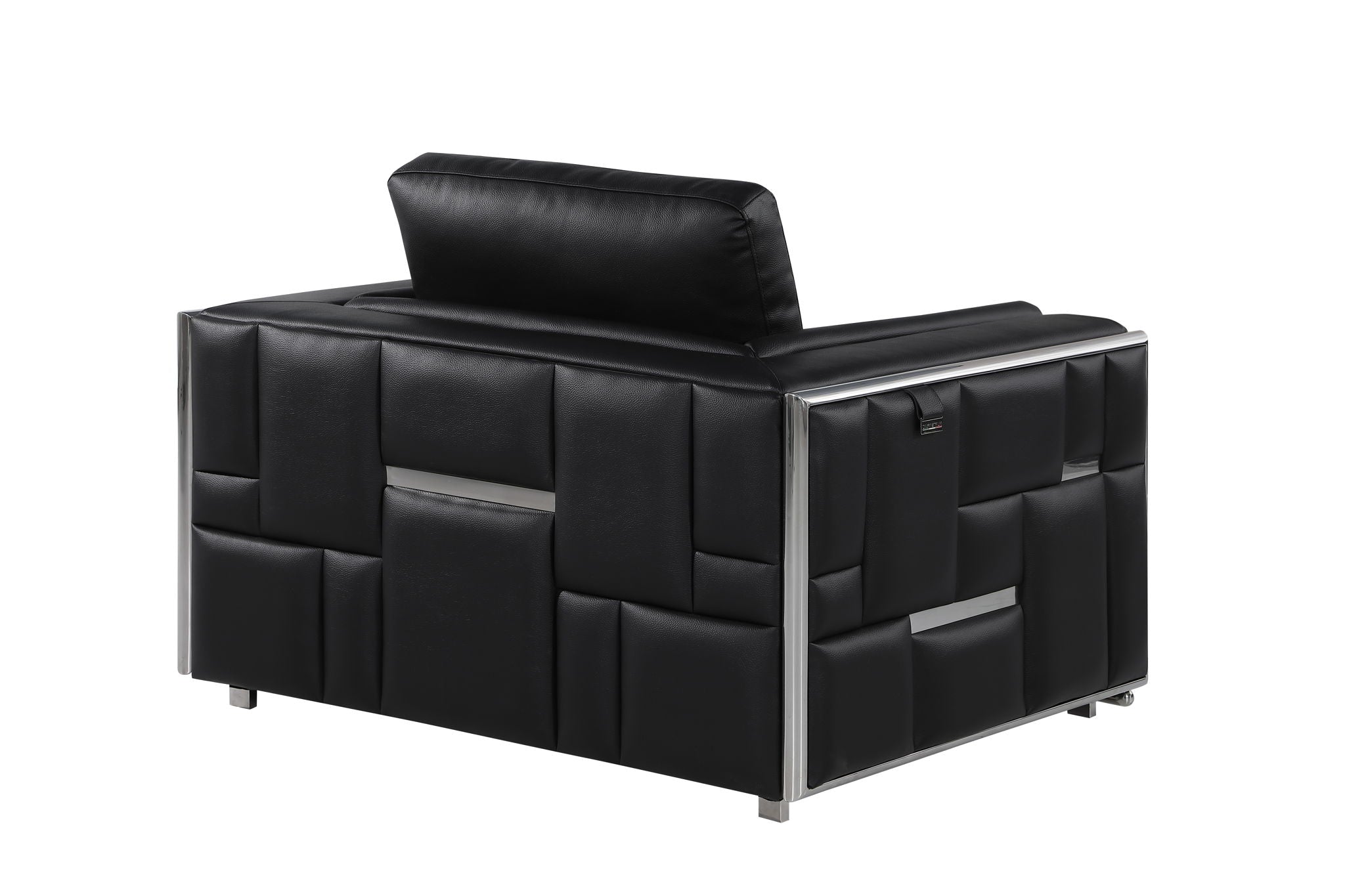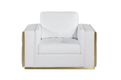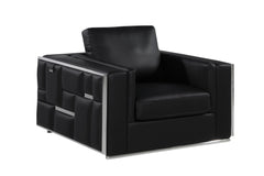 This Modern Top Grain Italian Leather chair set is crafted using the finest of materials, durable Brazilian solid wood construction, and premium leather. This sofa set is a fine example of modern design. It displays an aesthetically pleasant linear design with chrome accents to foster sophistication. A great way to convey simple luxury in any room. This masterpiece is a delightfully distinguished mix of functionality and style. The chrome trim effortlessly elevates any room with a touch of contemporary design. The cushions easily sit one person in optimal comfort, with the width of the armrests also offering a functional purpose as a perfect place for resting your favorite drink or a book. Starting from the design to the finished product, each step of the production process is checked rigorously for quality. The selection of top-grain Italian leather for the upholstering and solid Brazilian wood for the frame is done with the utmost respect for the finest raw materials. Italy is world-renowned for high-quality leather. You can smell, feel, and see its high quality in every sofa set.