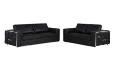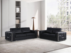 1130 - Top Grain Italian Leather Sofa And Loveseat - Black