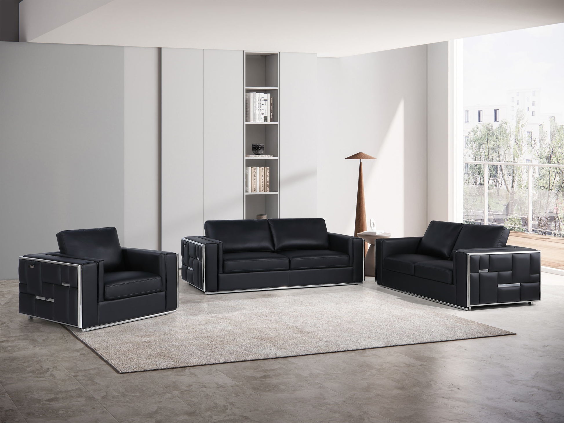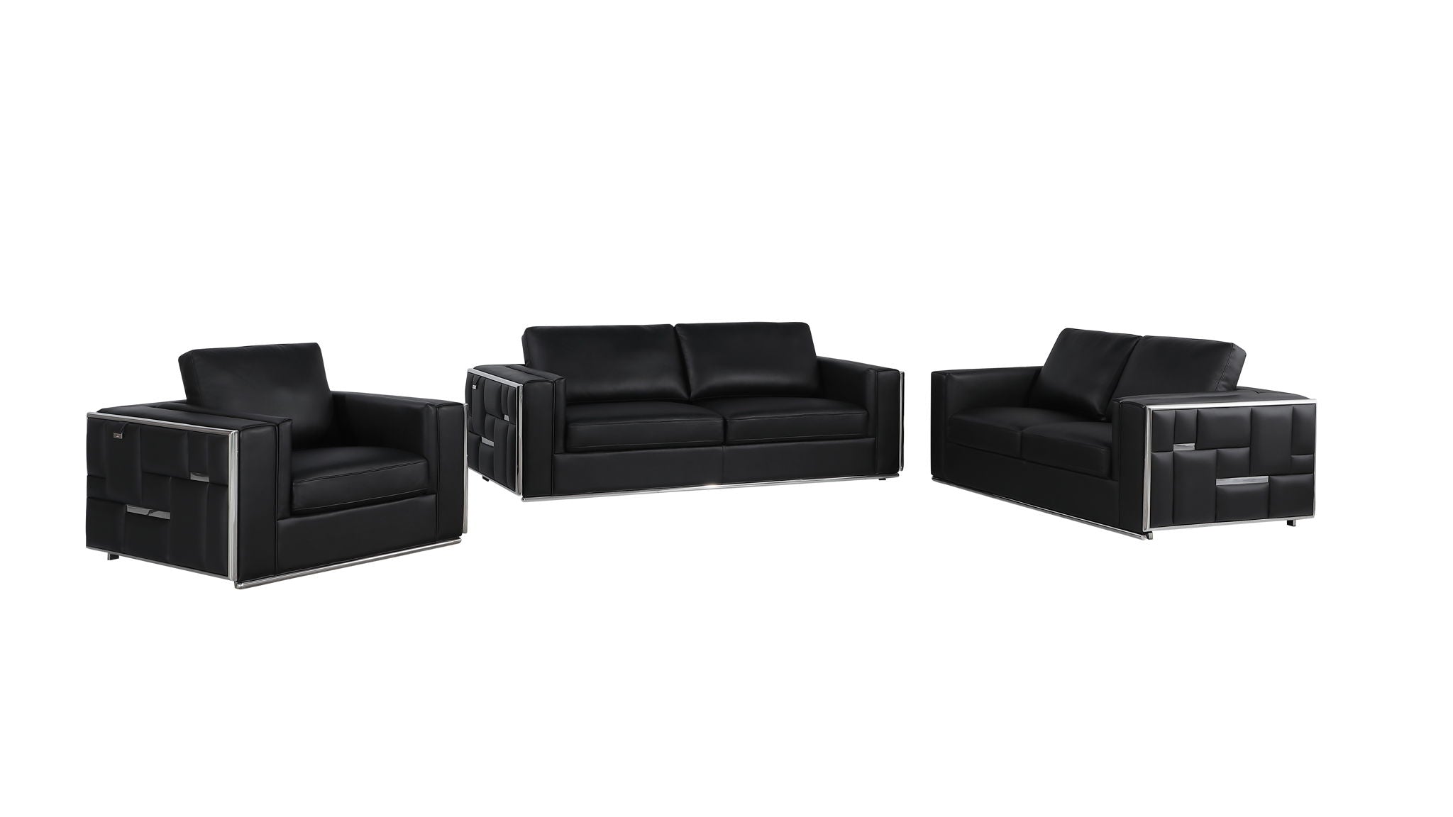 1130 - Top Grain Italian Leather 3 Piece Set - Black