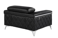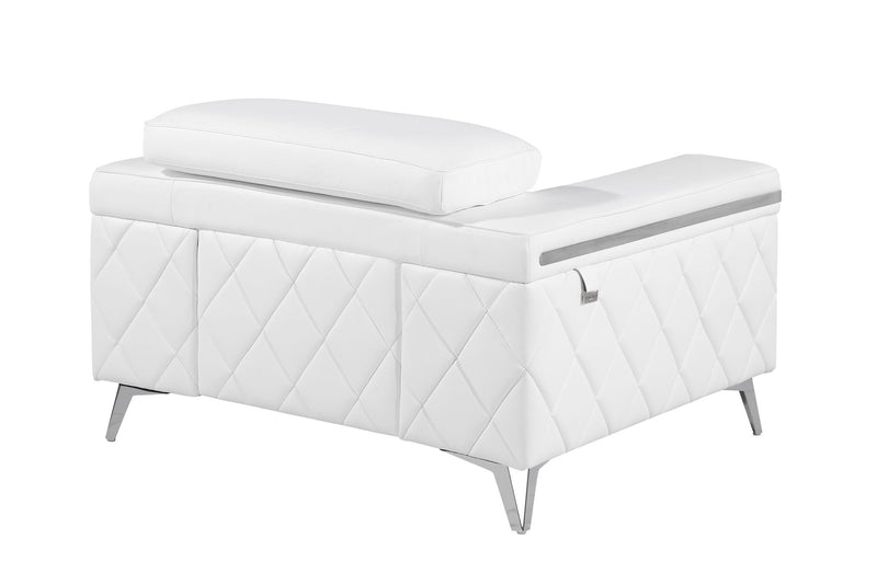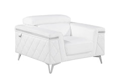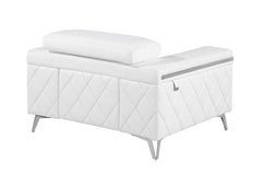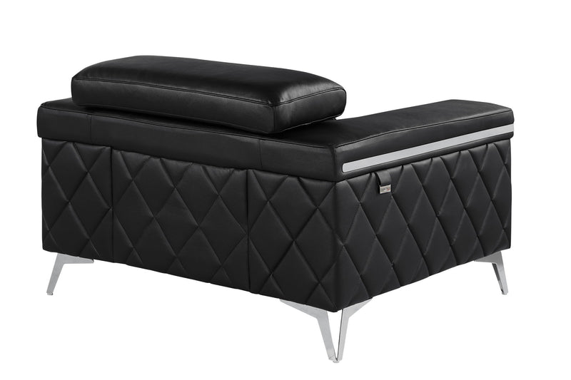 Exuding stylish form and comfort, this chair is a wide width for comfortable seating and is inspired by Italian design. The gorgeous, stainless steel chrome legs and trim add a beautiful contrast to the top-grain Italian leather upholstery. Additional support is provided with adjustable headrests for neck comfort that uses a state-of-the-art Japanese ratchet system with multiple adjustable positions. The cushions easily seat one person in optimal comfort, with the width of the armrests also offering a functional purpose as a perfect place for resting your drink or a book. The selection of top-grain Italian leather for the upholstering and solid Brazilian wood for the sofa frame is done with the utmost respect for the finest raw materials. Italy is world-renowned for high-quality leather. You can smell, feel, and see its high quality in every sofa set.
