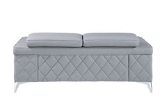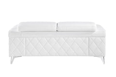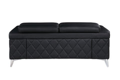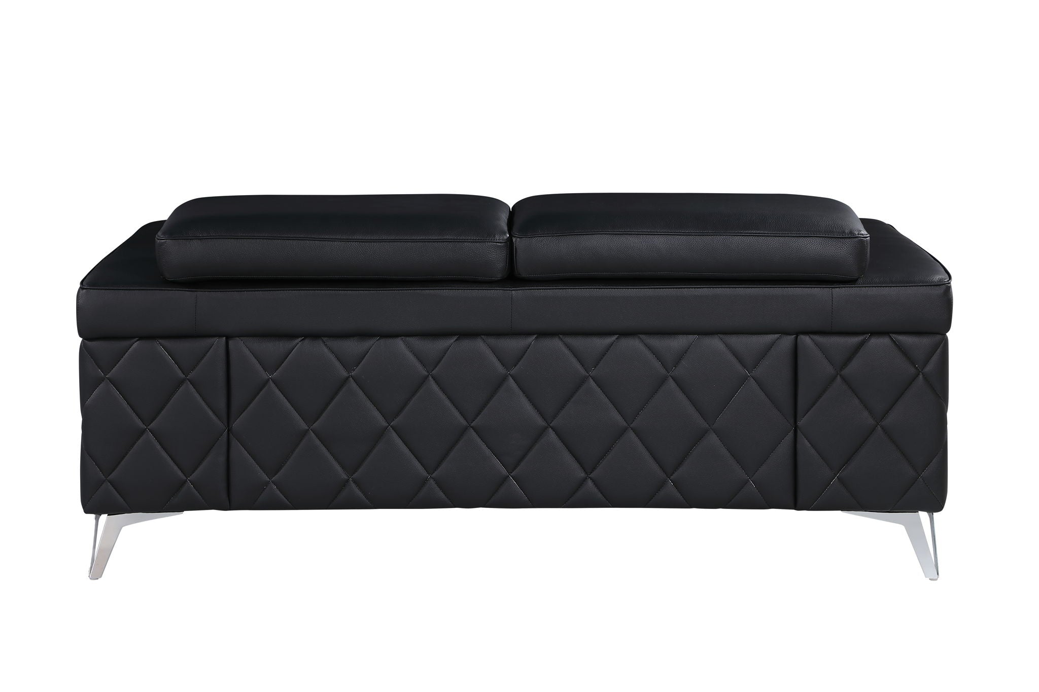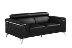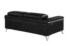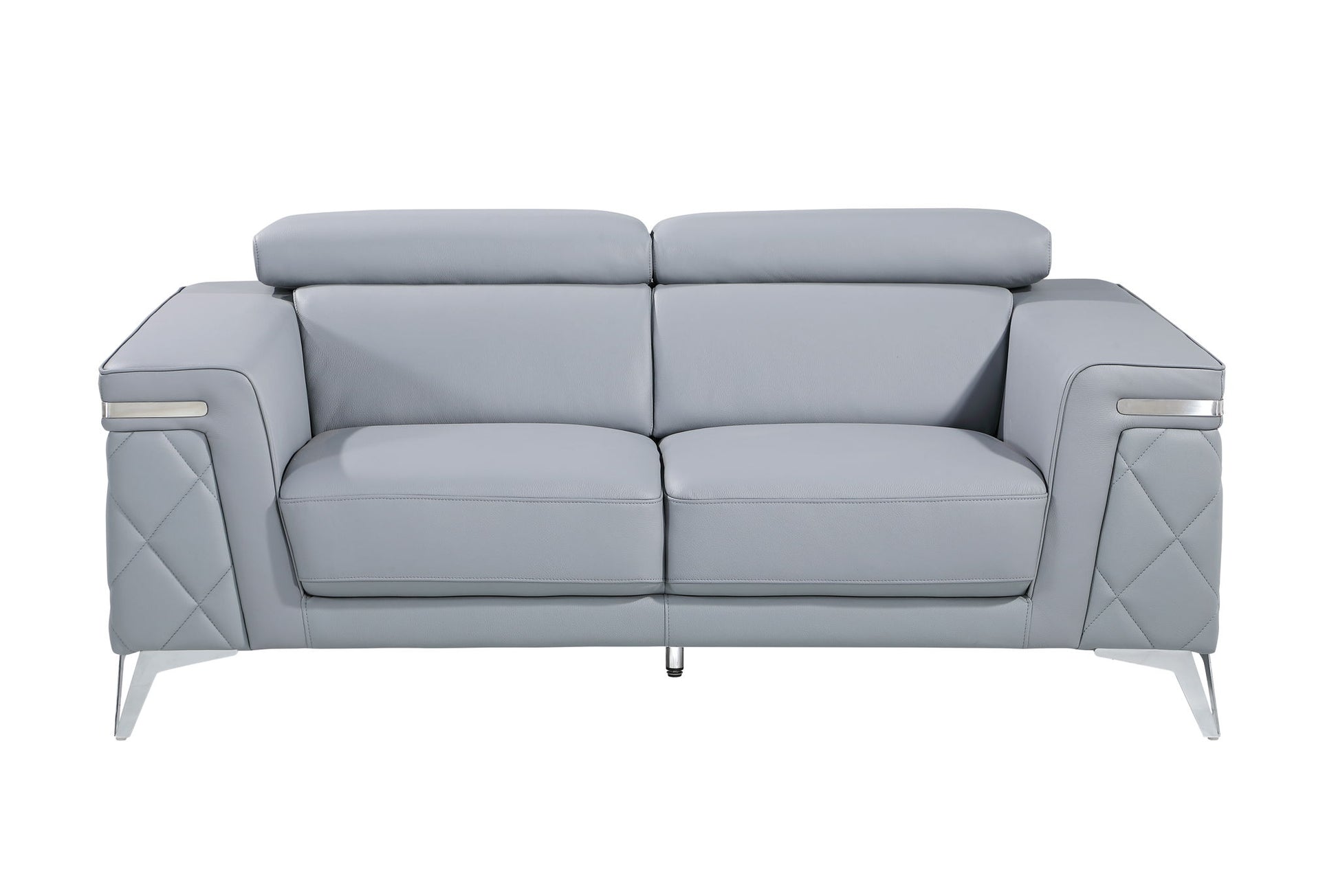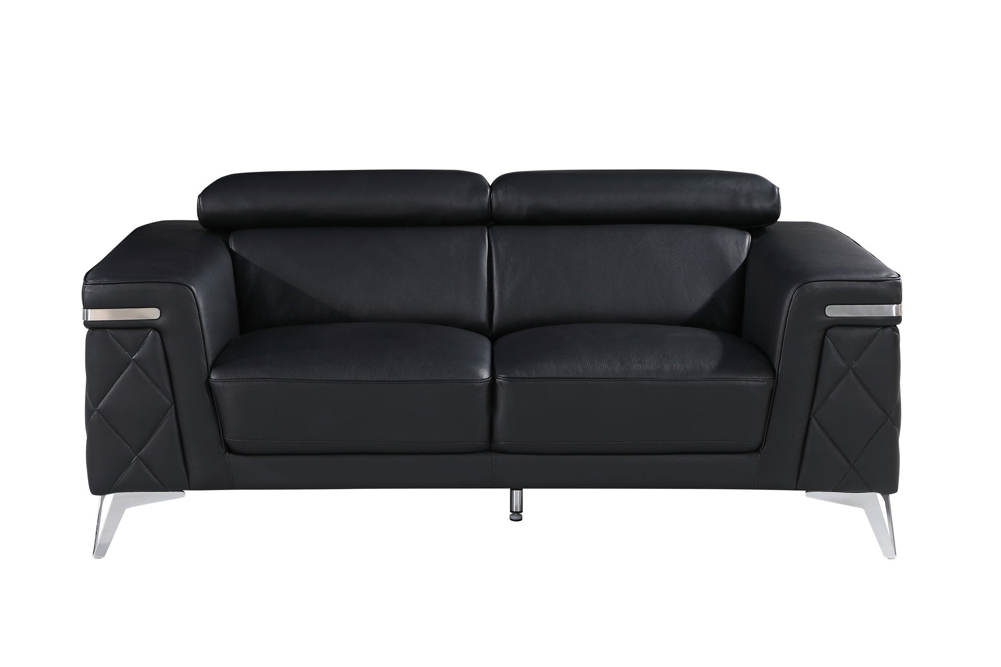 Exuding stylish form and comfort, this loveseat is a wide width for comfortable seating and is inspired by Italian design. The gorgeous, stainless steel chrome legs and trim add a beautiful contrast to the top grain Italian leather upholstery. Additional support is provided with adjustable headrests for neck comfort that uses a state-of-the-art Japanese ratchet system with multiple adjustable positions. The cushions easily seat 2 people in optimal comfort, with the width of the armrests also offering a functional purpose as a perfect place for resting your drink or a book. The selection of top grain Italian leather for the upholstering and solid Brazilian wood for the sofa frame is done with utmost respect for the finest raw materials. Italy is world renowned for high quality leather. You can smell and feel and see its high quality in every sofa set.