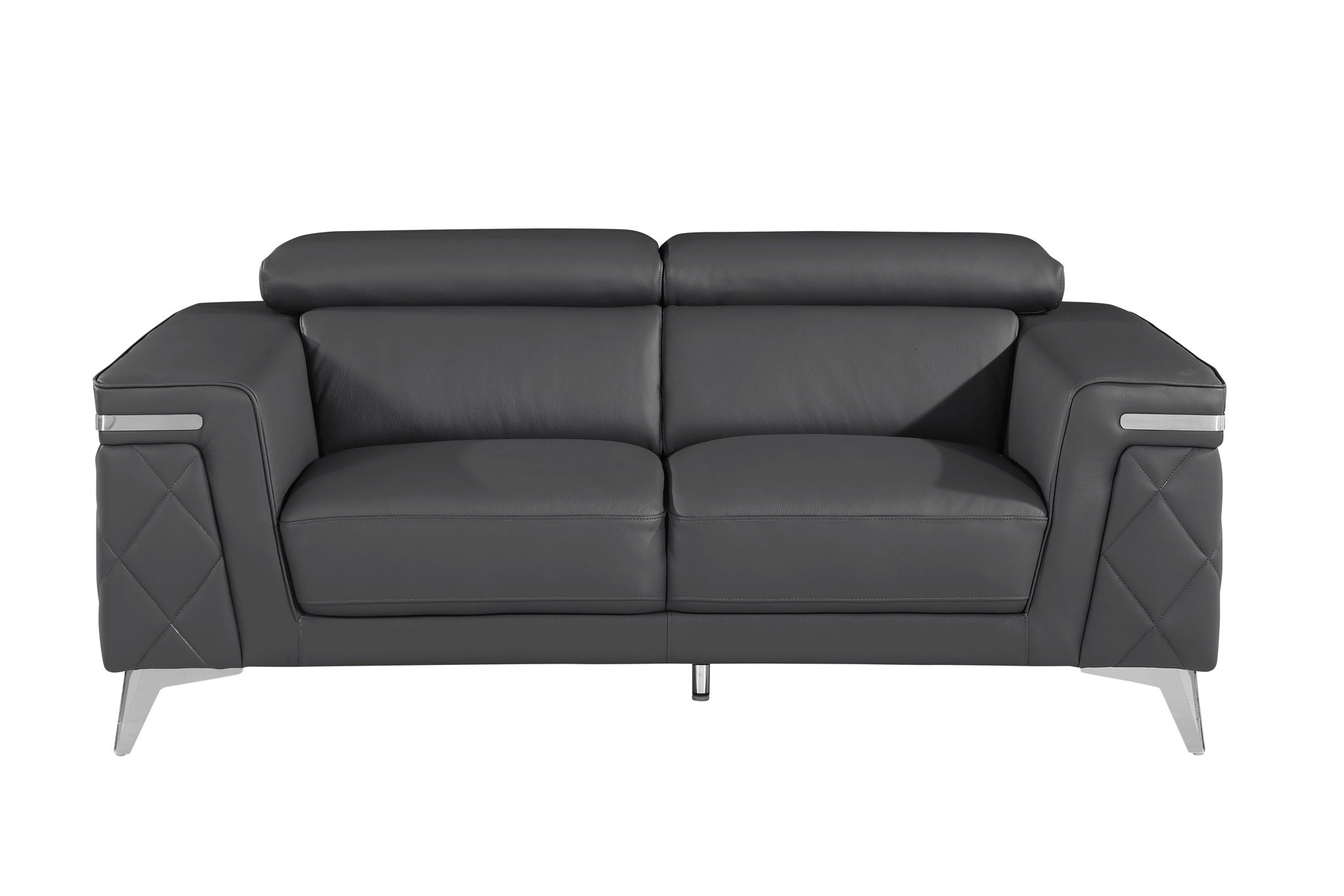 1140 - Top Grain Italian Leather Loveseat - Dark Grey