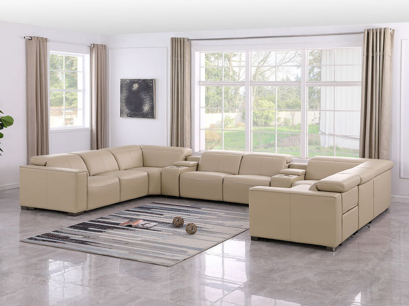 1208 - 10 Piece U Shaped Leather Sectional With 4 Power Recliners & Power Headrest - Beige