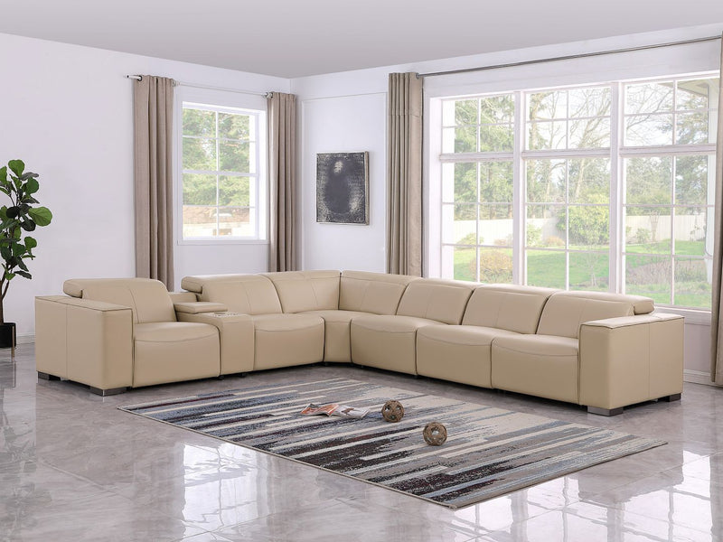 1208 - 7 Piece L-Shaped Leather Reclining Sectional With 4 Power Recliners - Beige