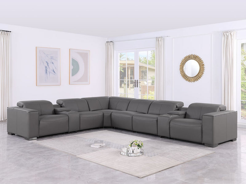 1208 - 8 Piece L Shaped Leather Sectional With 3 Power Recliners & Power Headrests - Dark Gray
