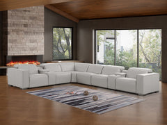 1208 - 8 Piece L Shaped Leather Sectional With 4 Power Recliners & Power Headrests - Light Gray
