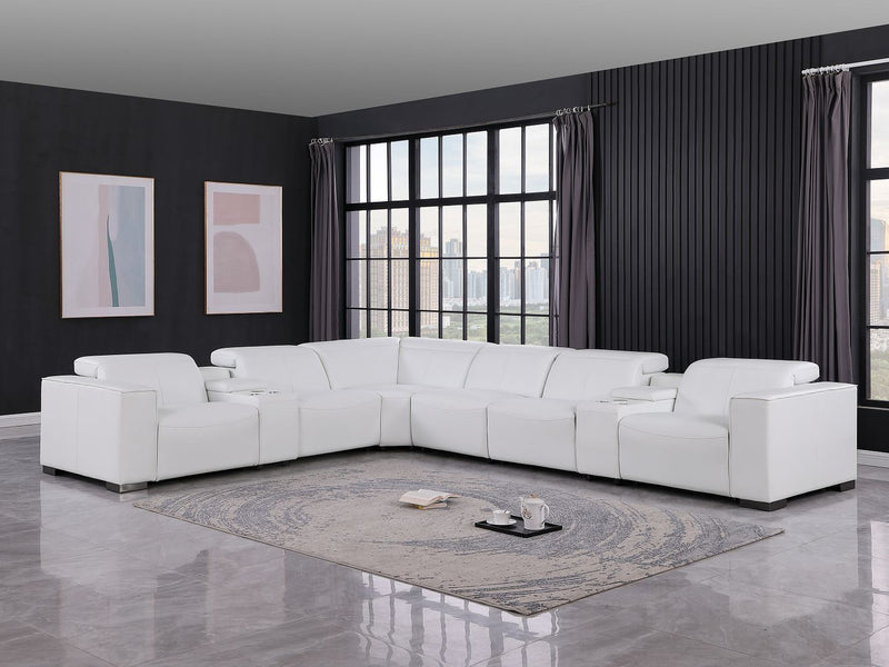 1208 - 8 Piece L Shaped Leather Sectional With 4 Power Recliners & Power Headrests - White