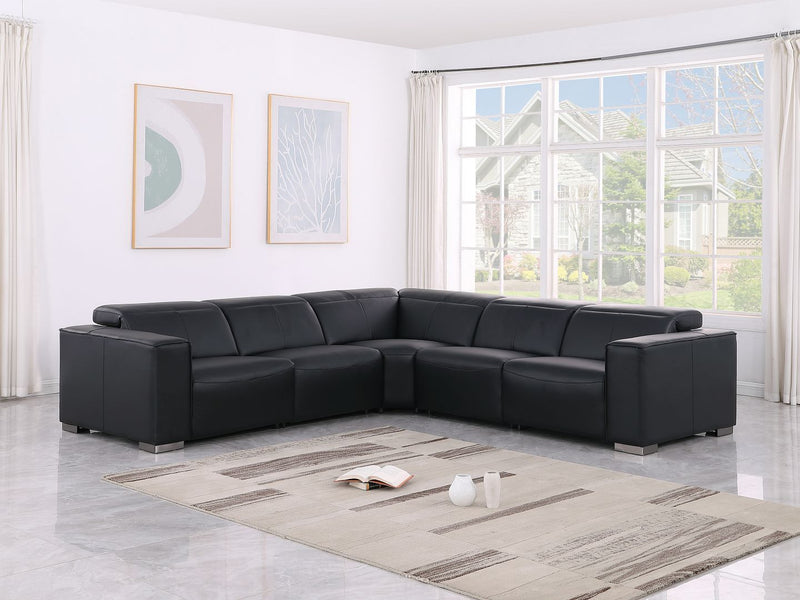 This genuine leather sectional beautifully blends sophisticated style with exceptional comfort. Its sleek, low-profile design allows for an unobstructed view when the headrests are lowered, while the power-adjustable headrests and reclining seats—complete with lumbar support—provide personalized support for ultimate relaxation.