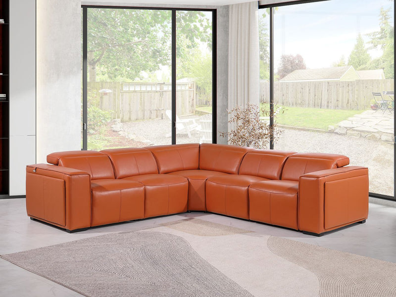 1224 - 5-Piece L-Shaped Sectional Sofa In With 3 Power Recliners & Power Headrests - Cognac