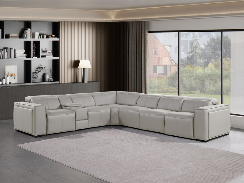 1224 - 7-Piece L-Shaped Sectional Sofa In With 4 Power Recliners & Power Headrests - Light Gray