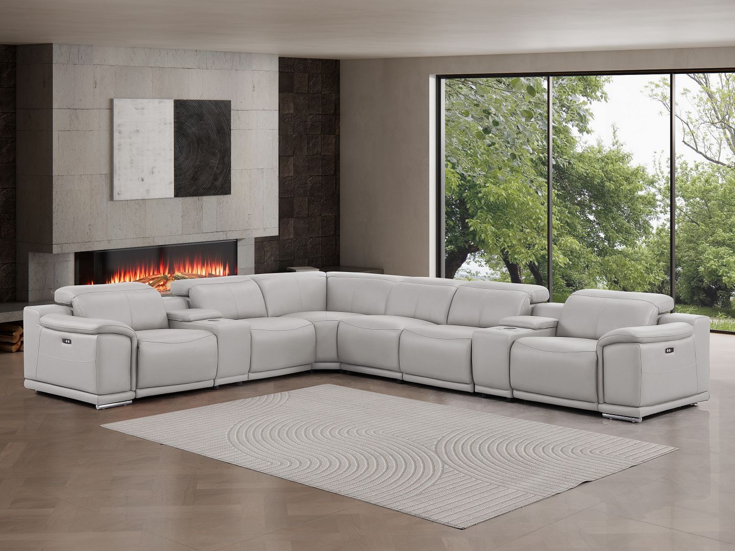 2679 - 8-Piece L-Shaped Power Reclining Sectional In Genuine Leather (4 Recliners) - Light Gray