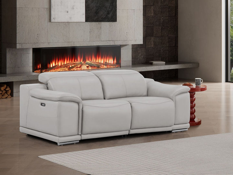 2679 - Genuine Leather Loveseat With Dual Power Recliners - Light Gray