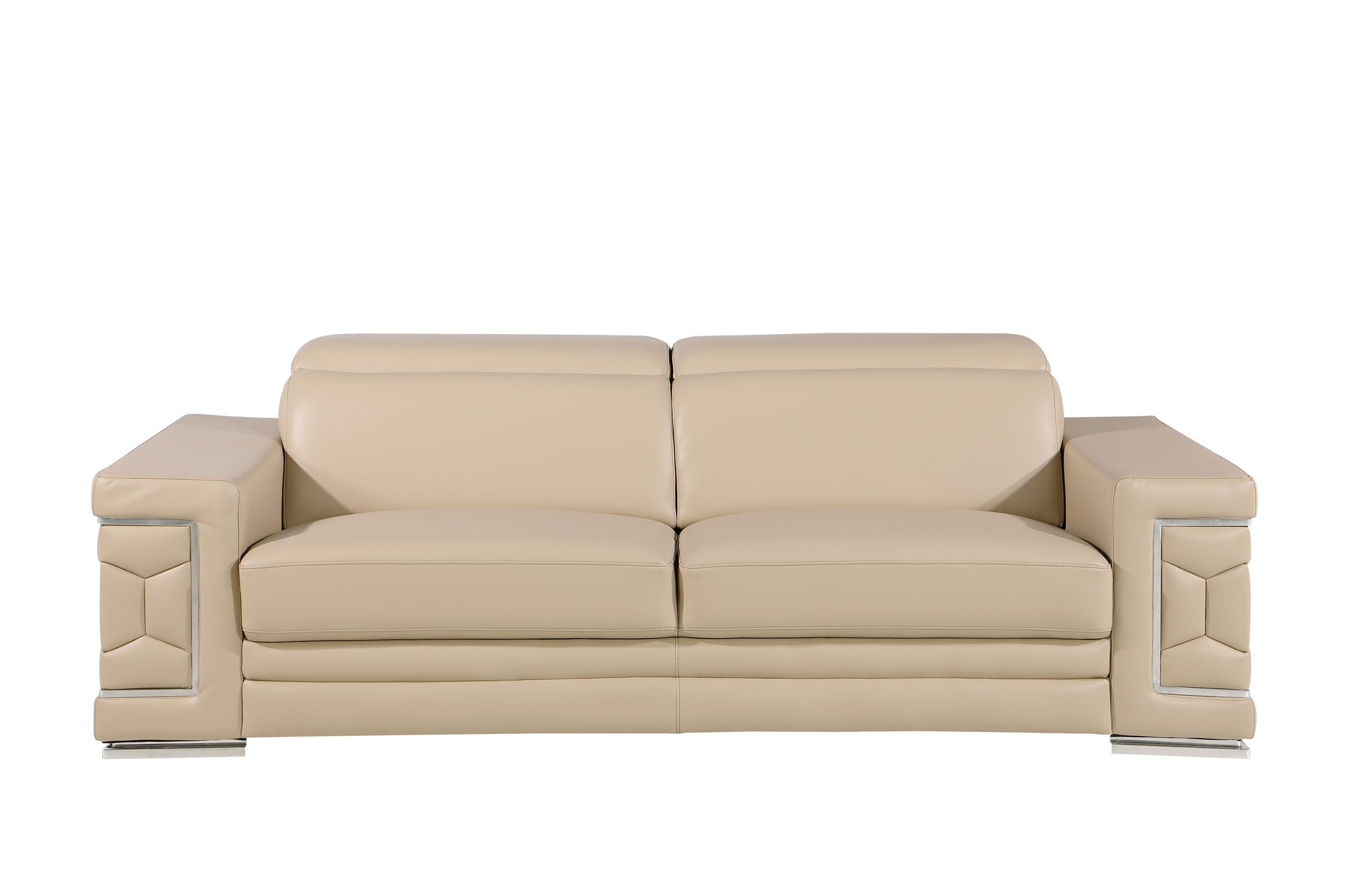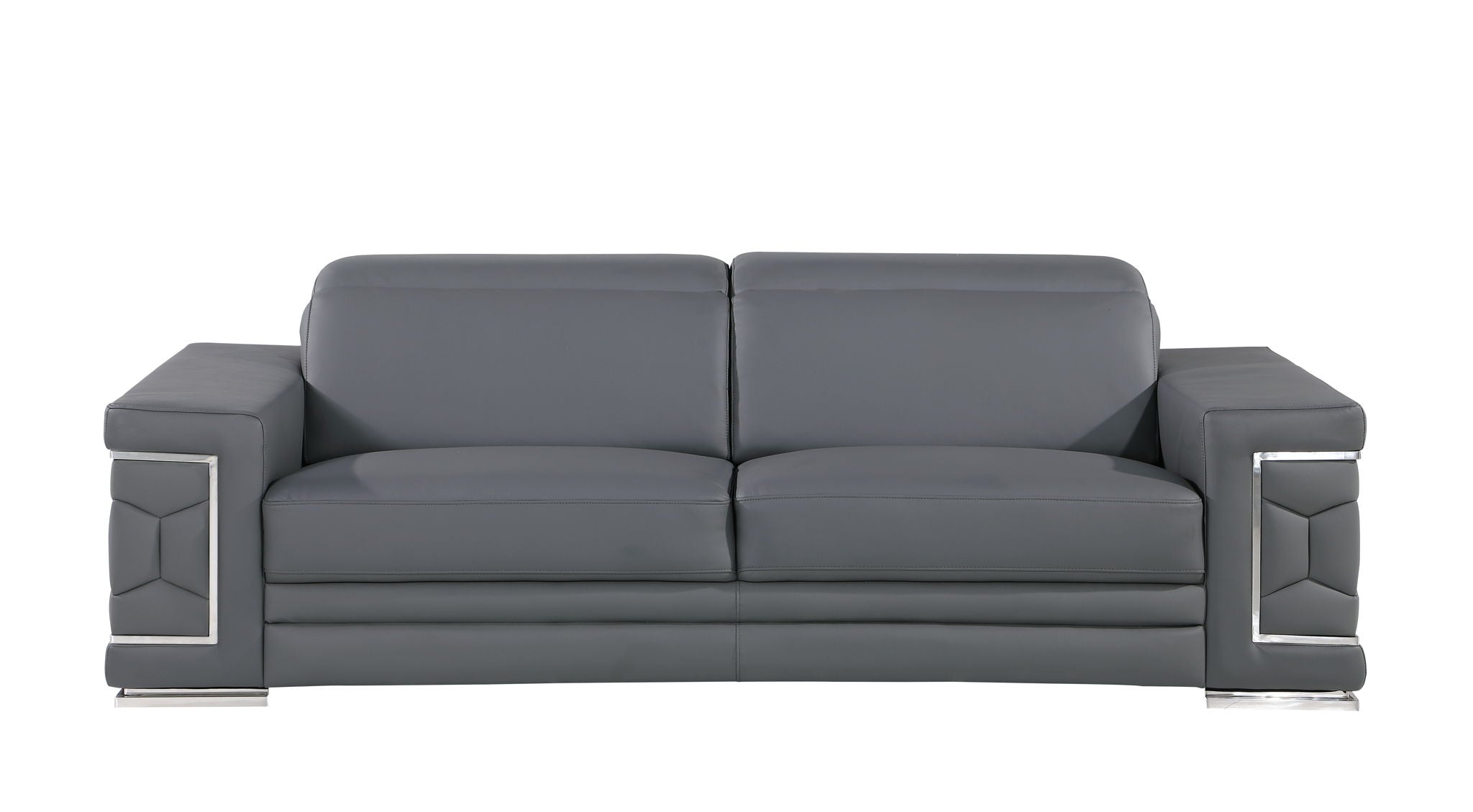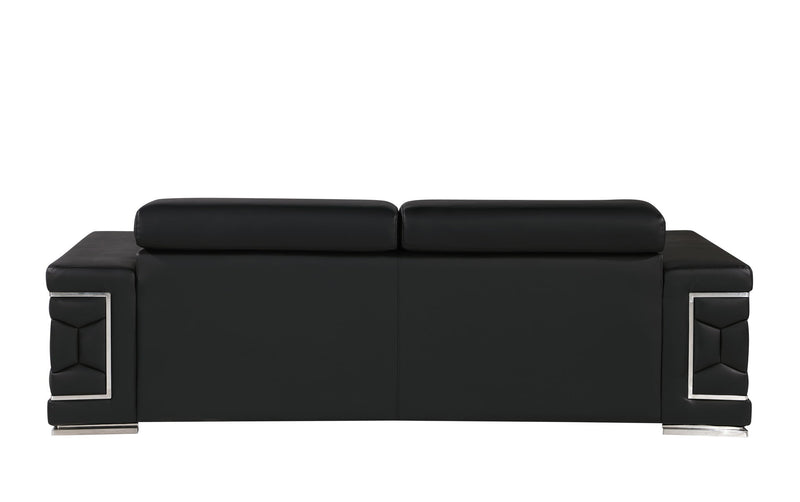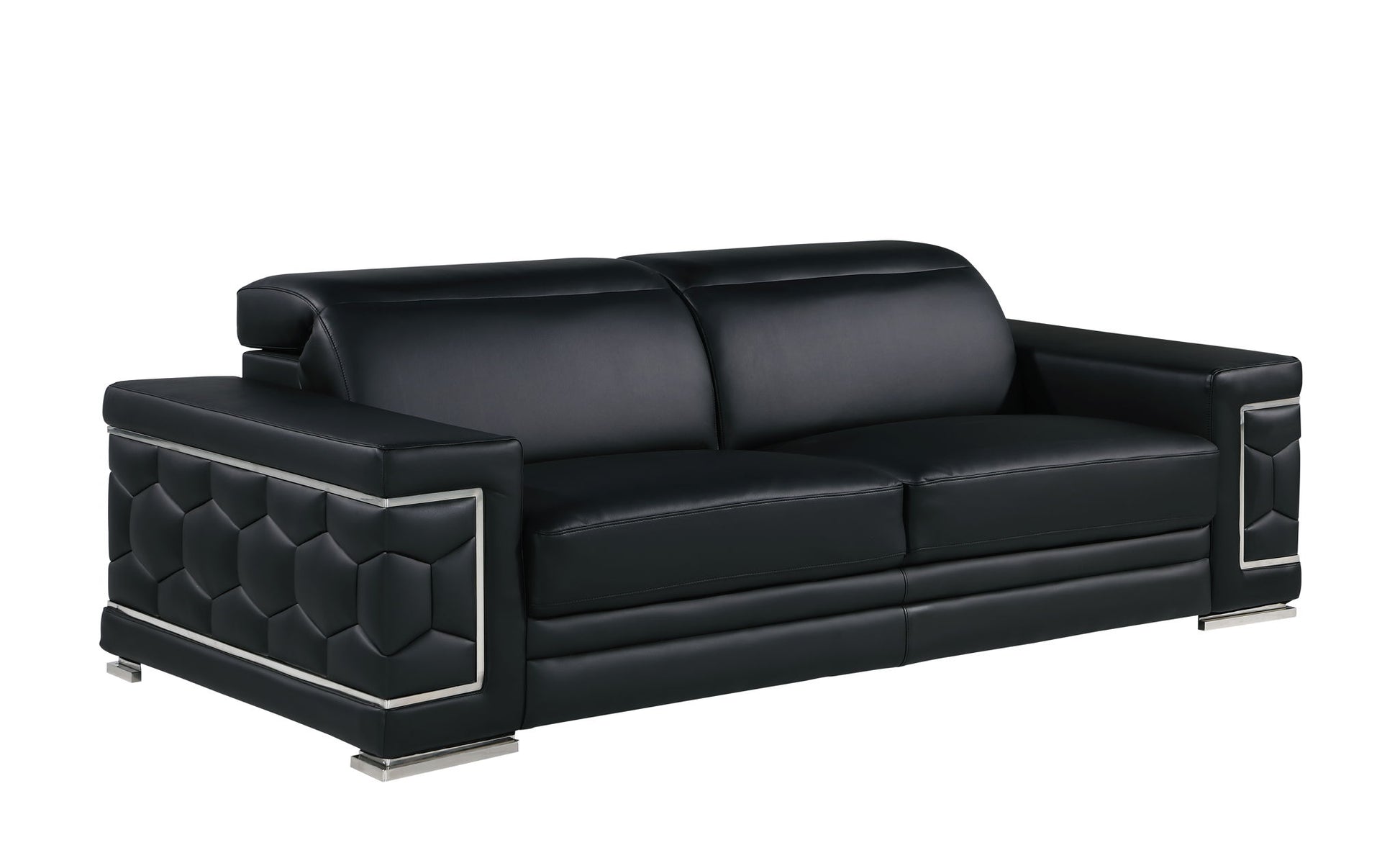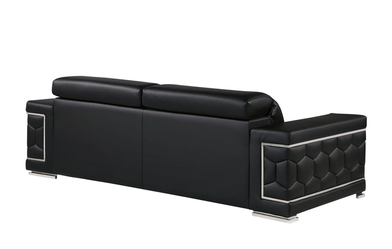 Exuding stylish form and comfort, this sofa set is inspired by modern and Italian design. The gorgeous, stainless steel chrome legs and trim add a beautiful contrast to the Italian Genuine leather upholstery. The cushions easily seat three people in optimal comfort, with the width of the armrests also offering a functional purpose as a perfect place for resting your favorite drink or a book. - Kiln-Dried hardwood frame with reinforced corner blocks - Soft-padded frame made with polyurethane foam wrapped in polyester fiber - 8-gauge sinuous spring construction - 3-layer high-density foam cushioning - Low profile solid stainless-steel leg Starting from the design to the finished product, each step of the production process is checked rigorously for quality. The selection of Genuine leather for the upholstering and solid Brazilian wood for the sofa frame is done with utmost respect for the finest raw materials.