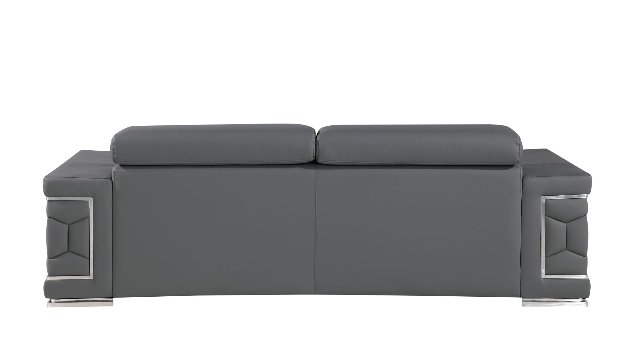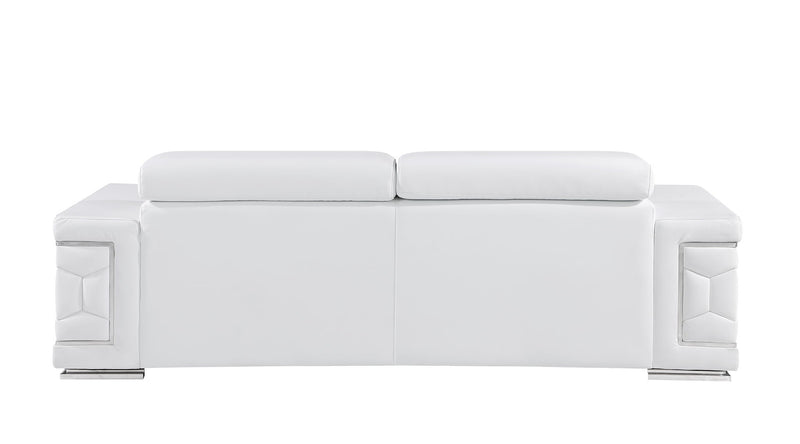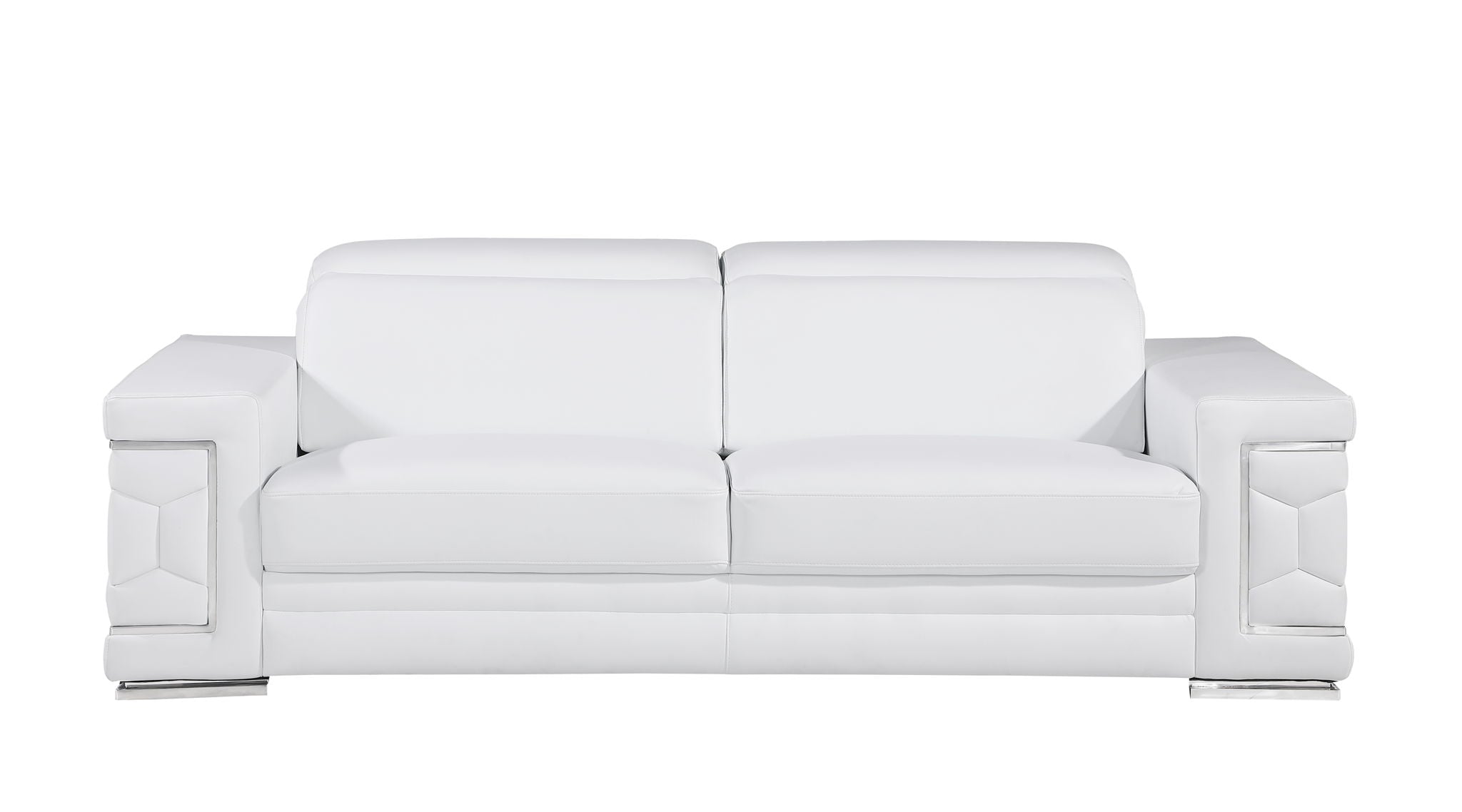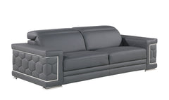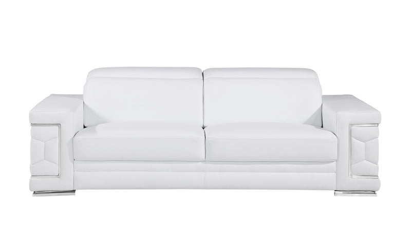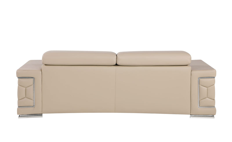 Exuding stylish form and comfort, this sofa set is inspired by modern and Italian design. The gorgeous, stainless steel chrome legs and trim add a beautiful contrast to the Italian Genuine leather upholstery. The cushions easily seat three people in optimal comfort, with the width of the armrests also offering a functional purpose as a perfect place for resting your favorite drink or a book. - Kiln-Dried hardwood frame with reinforced corner blocks - Soft-padded frame made with polyurethane foam wrapped in polyester fiber - 8-gauge sinuous spring construction - 3-layer high-density foam cushioning - Low profile solid stainless-steel leg Starting from the design to the finished product, each step of the production process is checked rigorously for quality. The selection of Genuine leather for the upholstering and solid Brazilian wood for the sofa frame is done with utmost respect for the finest raw materials.