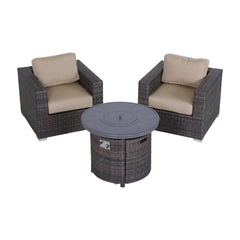 3 Piece All Weather Seating Group With Premium Cushions, Fire Pit Included - Beige / Brown Mix