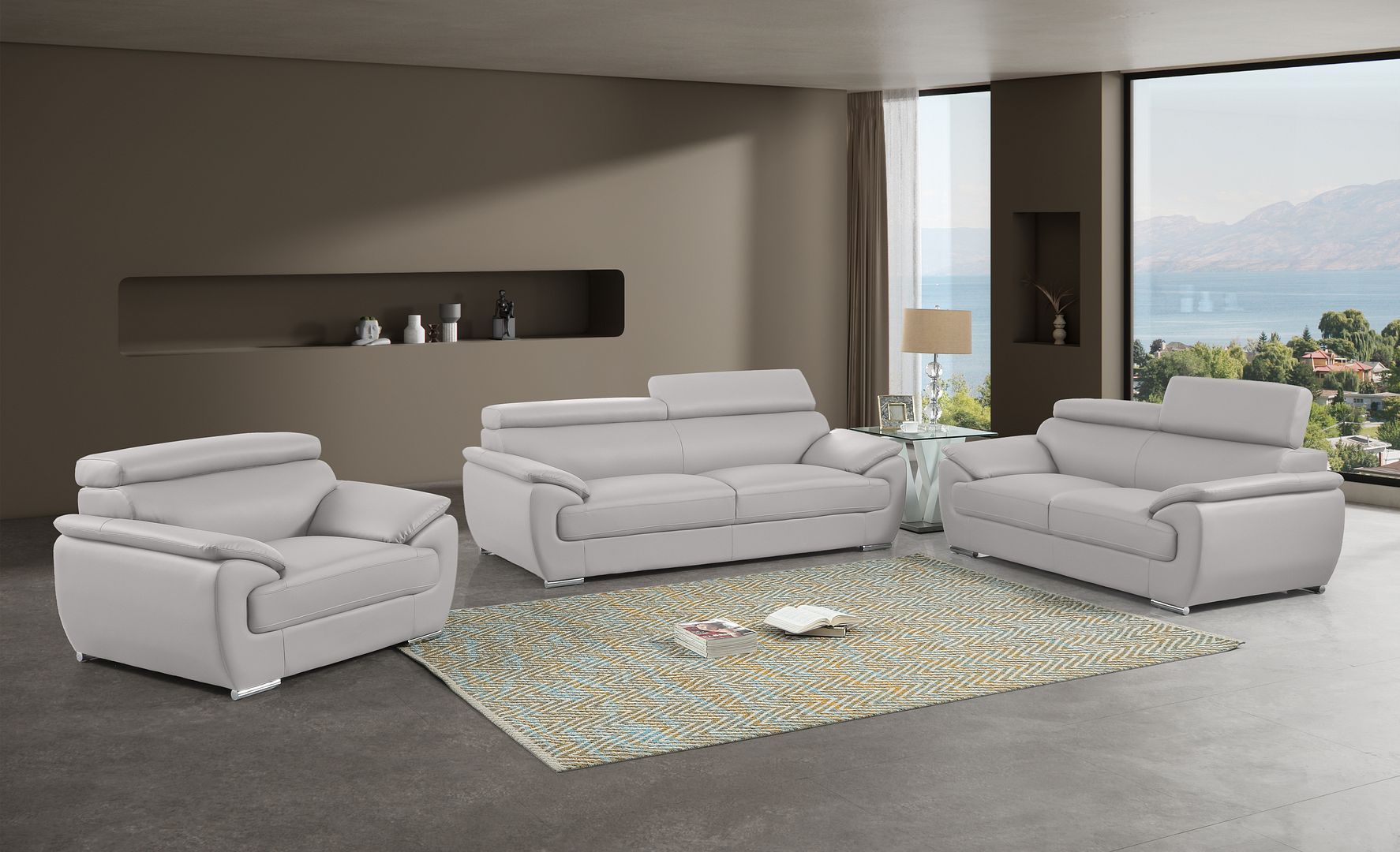 4571 - Genuine Leather, 3-Piece Sofa Set - Light Gray