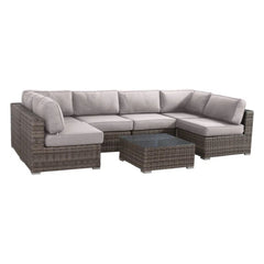 6 Person Wicker Seating Group With Premium Cushions - Gray Mix