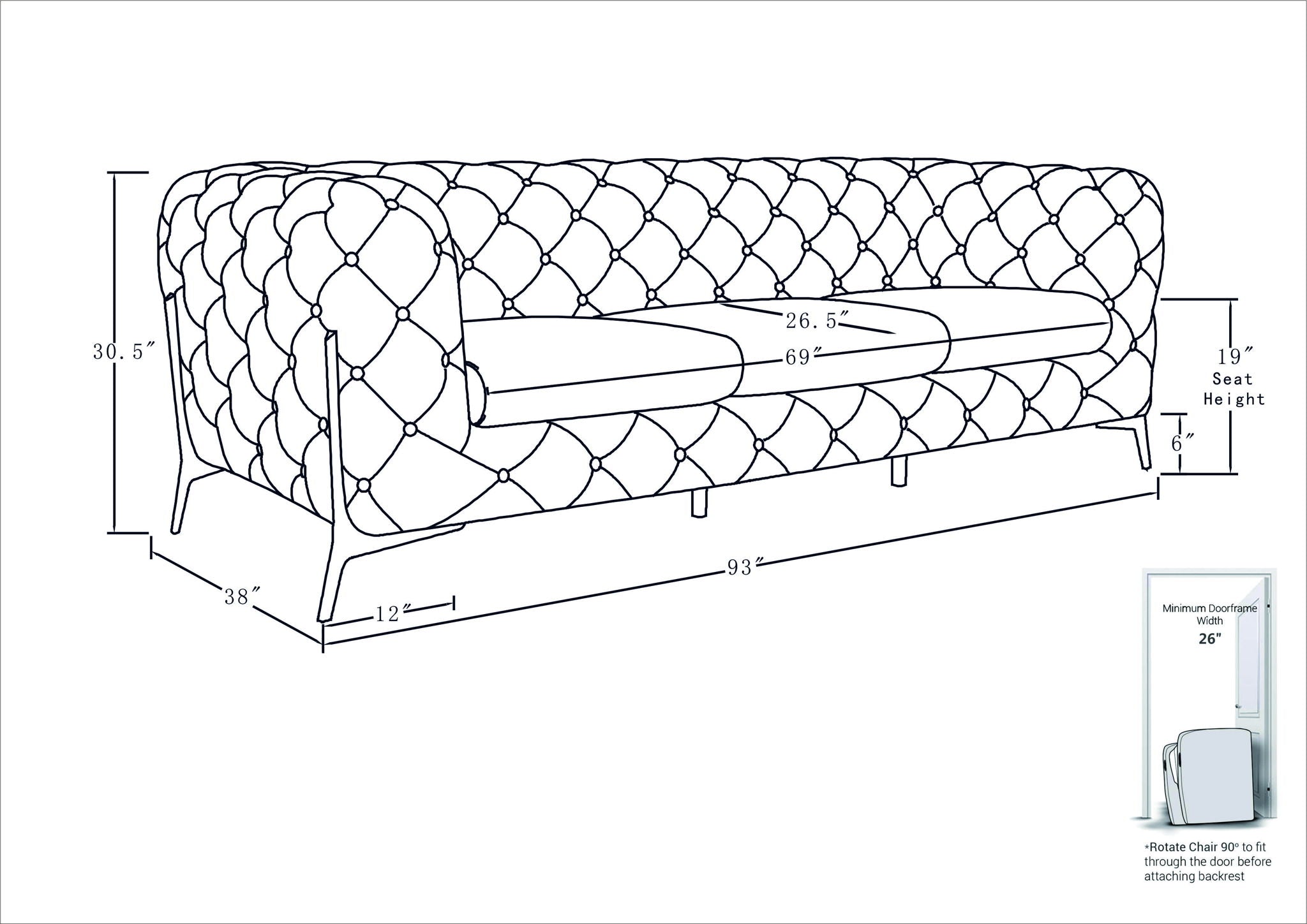 93.0"W x 38.0"D x 31.0"H - 158.0 lb