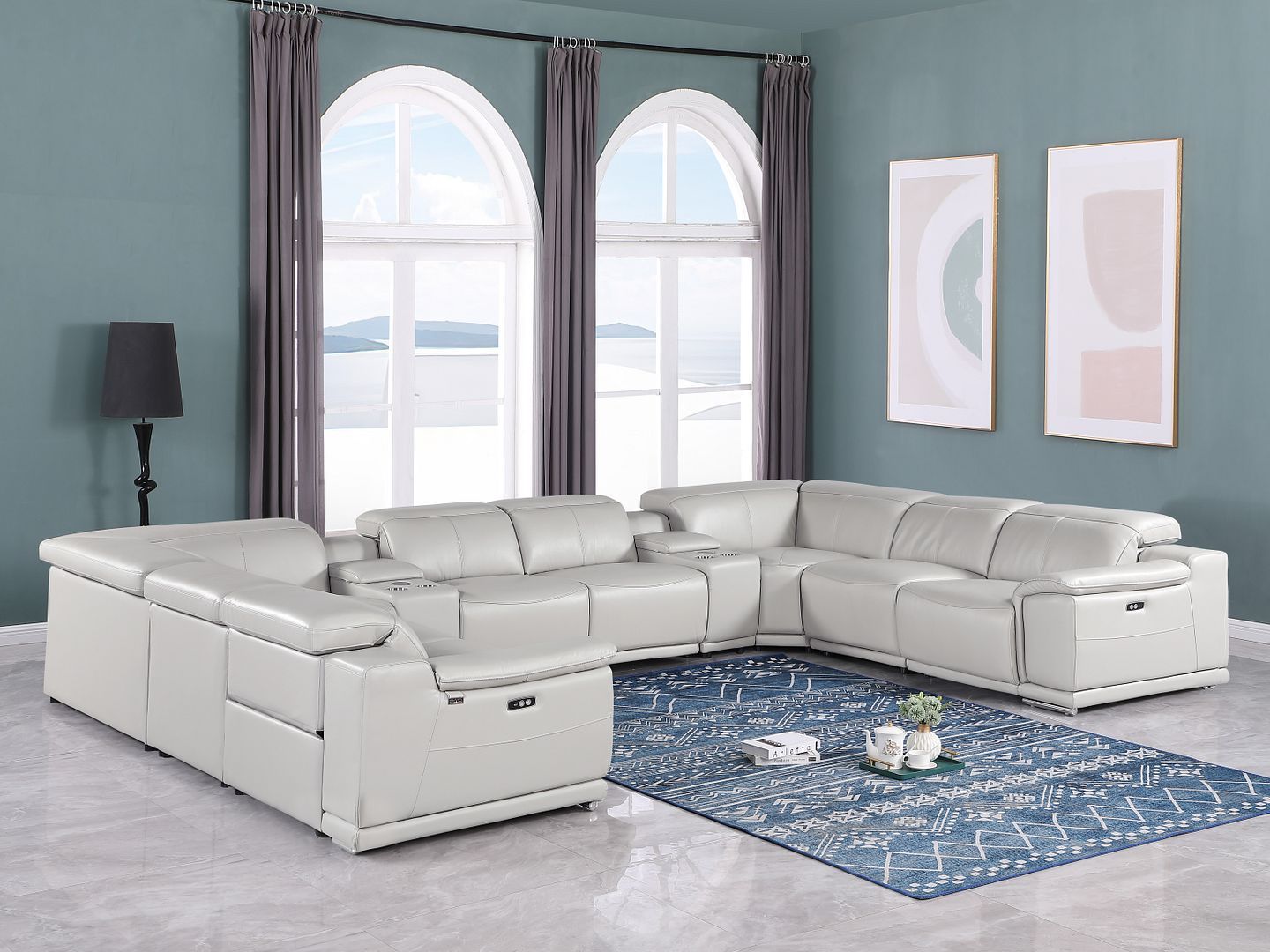 9762 - 10-Piece U-Shaped Sectional Sofa With 4 Power Recliners - Light Gray