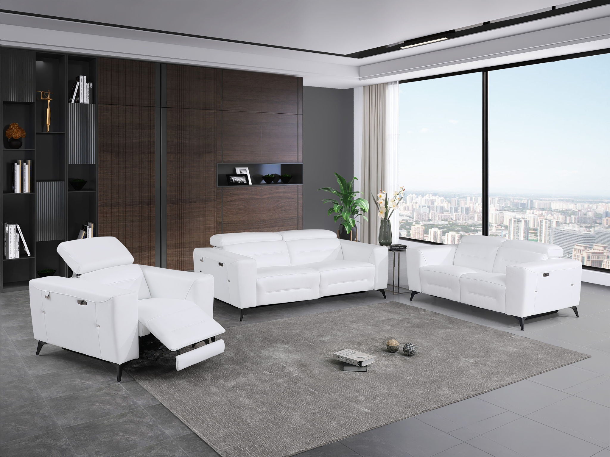 989 - Power Reclining Sofa Set With Power Headrest - White