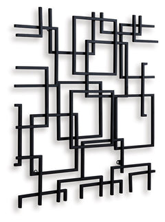 Intriguing with an intricate metal design, this wall sculpture is sure to add an artistic note to your modern interior. Its abstract style incorporates squares overlapping with fragmented lines in a black finish, for a look that’s simply amazing. A hidden bracket allows you to hang the wall decor four ways to suit your space.